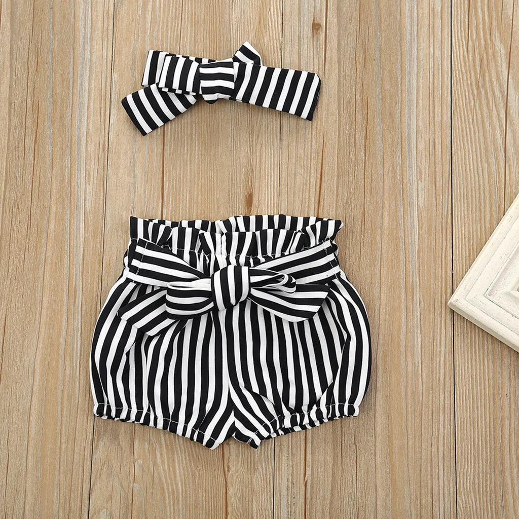 Полосатые наряды для маленьких девочек, Детский комбинезон для девочек, шорты банданы с бантом, комплект летней детской одежды, Kleding Meisje