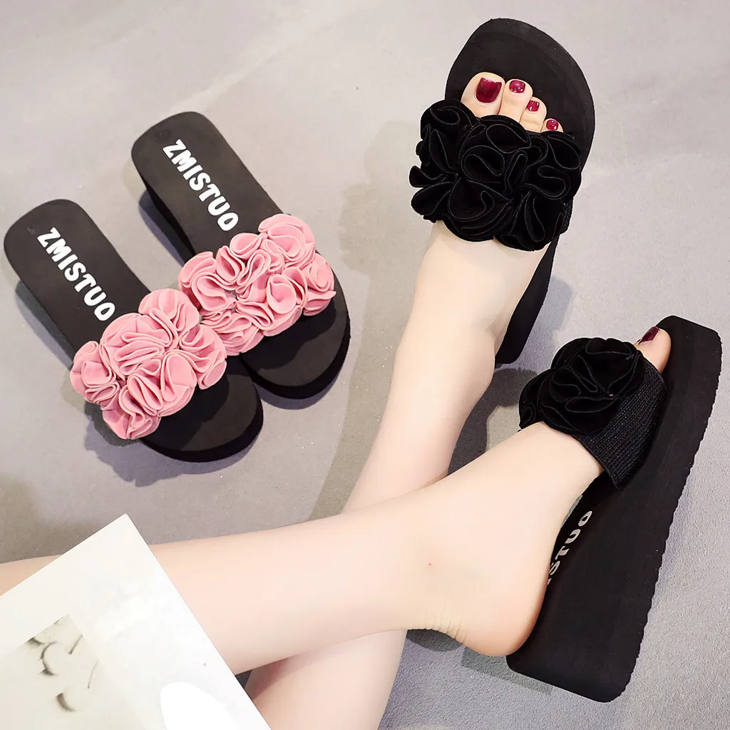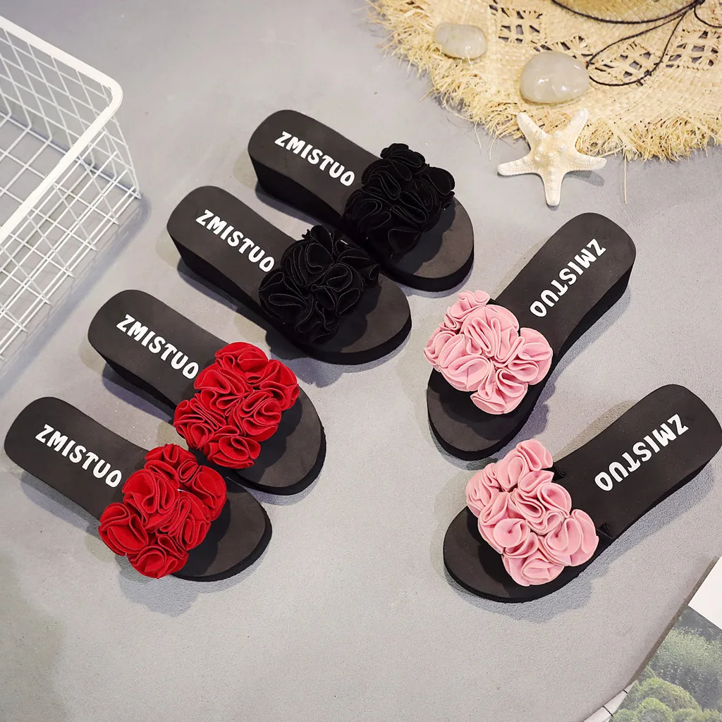 Женские летние модные повседневные вьетнамки на нескользящей танкетке; Пляжные шлепанцы