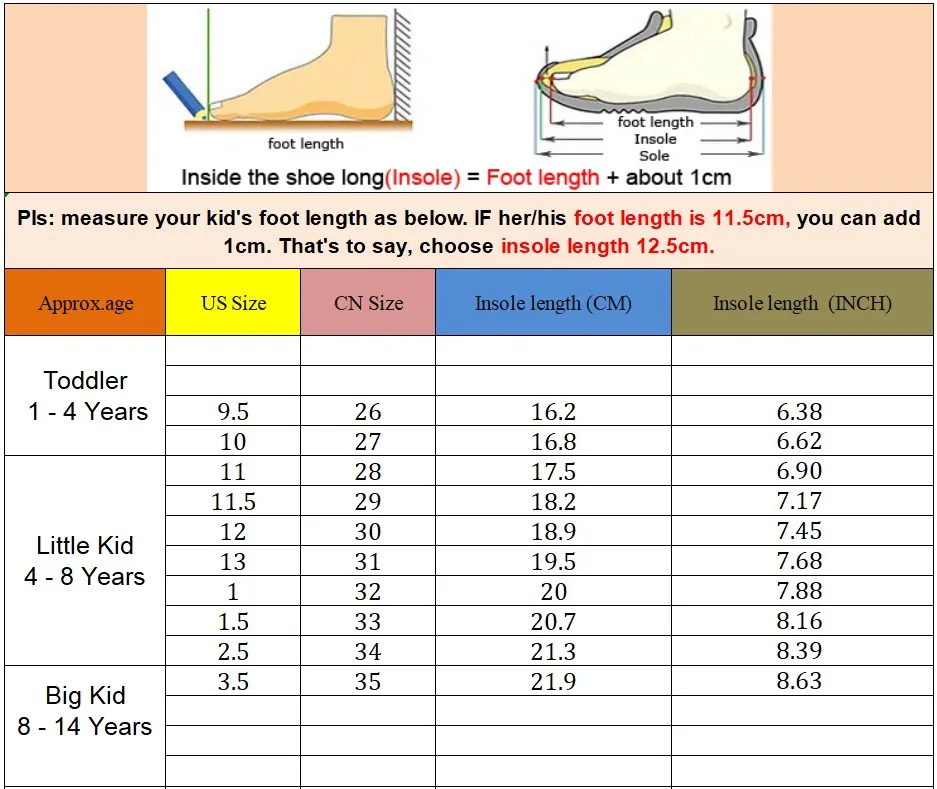 5.Что касается размера, Измерьте длину стопы ребенка в см или дюймах + 1 см или 0,03937 дюймаChВыберите соответствующий американский размер, спасибо