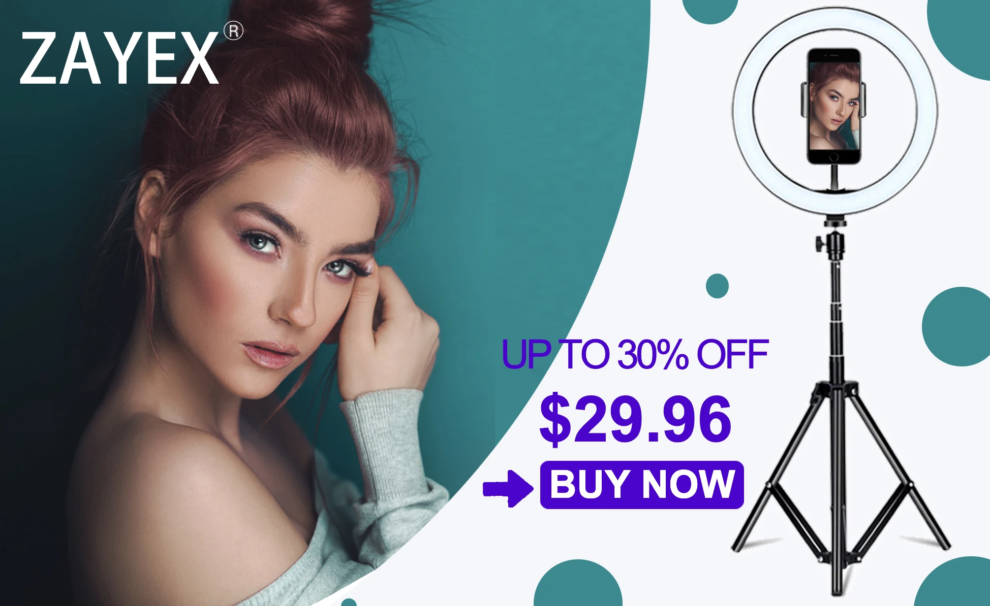 Кольцевая лампа ZAYEX не требует батареи, работает с большинством устройств, поддерживающих usb-порт, таких как ноутбук, ПК, внешний аккумулятор, зарядное устройство USB, адаптер переменного тока и т. д.