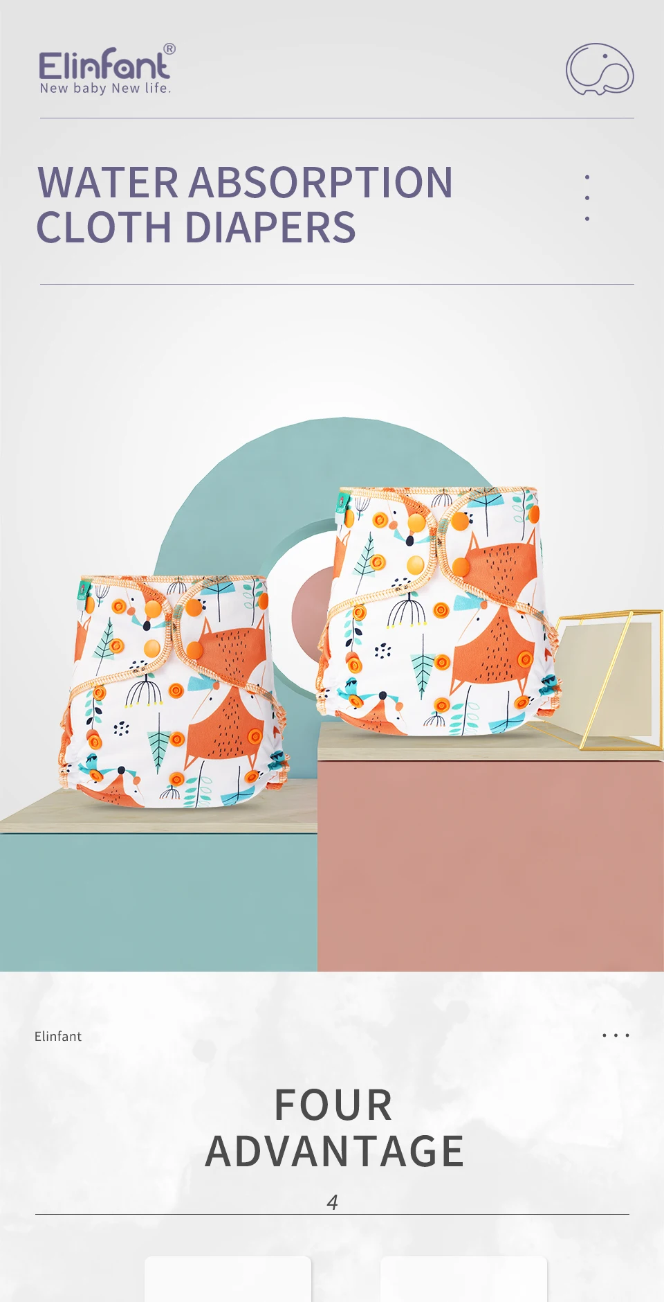 Elinfant супер мягкий детский hybird A12 тканевый подгузник Водонепроницаемый моющийся Регулируемый с двойной силой всасывания.