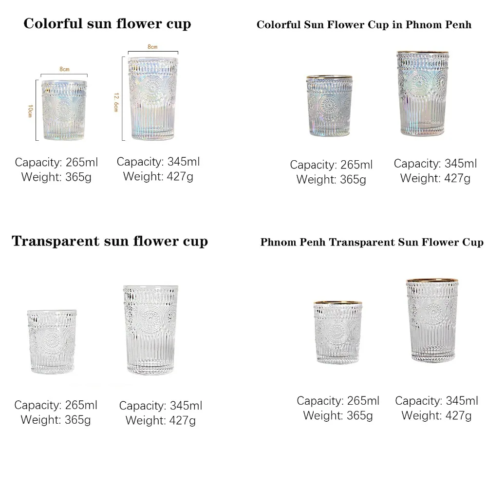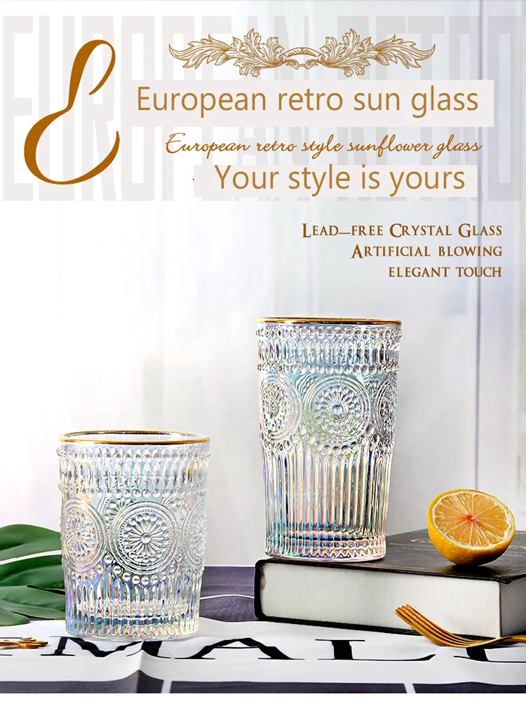 Европейский стиль ретро стеклянная термостойкая чашка для воды кофейная чашка тисненая Пномпень Подсолнух чашка для завтрака украшение для вина