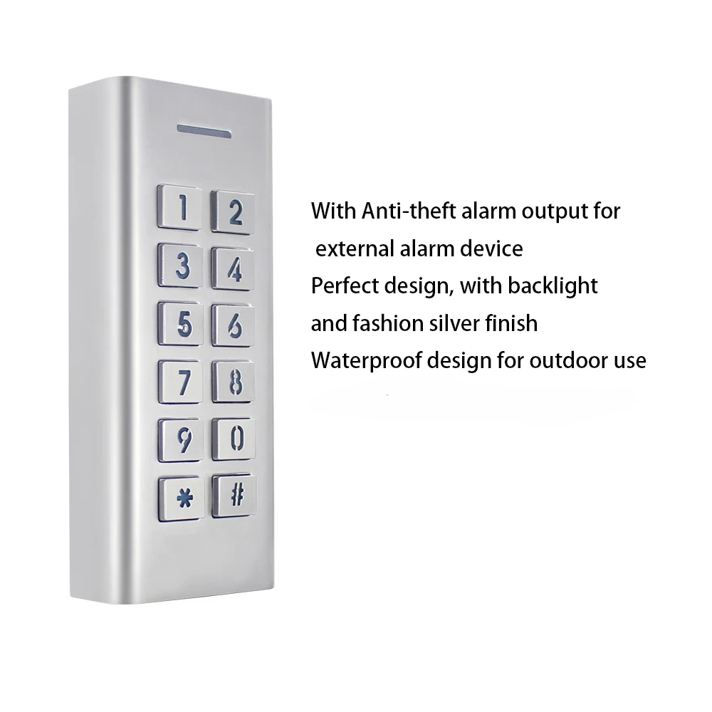 RFID 125Khz EM карта автономная клавиатура контроль доступа IP68 водонепроницаемый металлический чехол силиконовый защитный считыватель входных дверей K6EM-W-это отдельный вход, автономный контроль доступа поддерживает только пин-код. Это простое в установке и эксплуатации устройство, спроектированное в 6 проводов для монтажа.