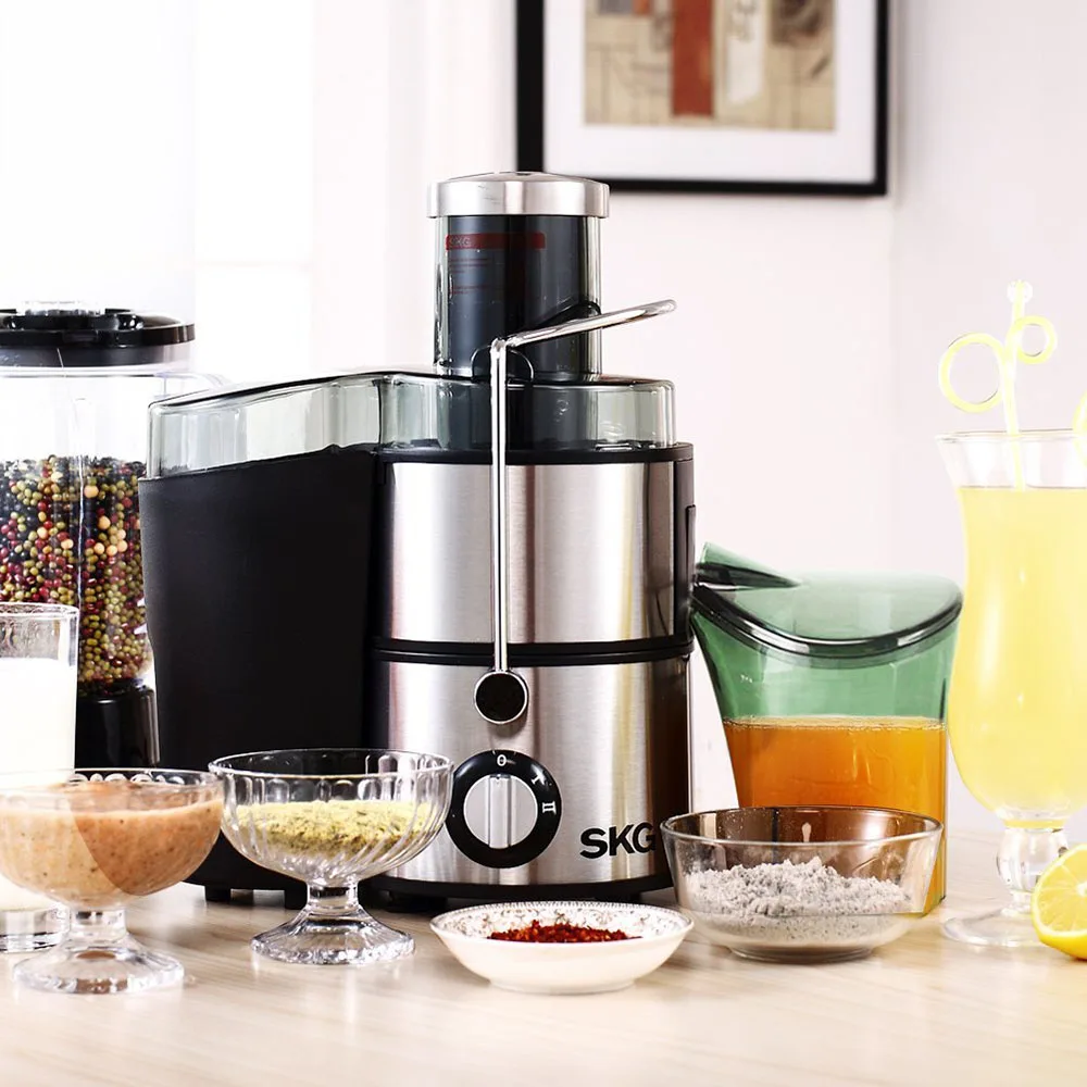 Этот простой в использовании экстрактор сока SKG делает его исключительно удобным, чтобы наслаждаться свежим, здоровым фруктовым и овощным соком от комфорта дома.