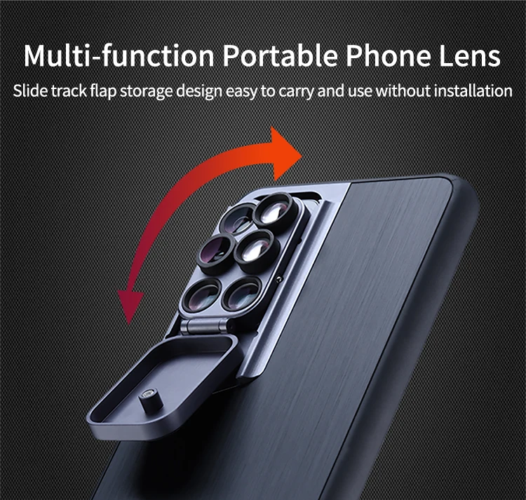 제품 매개 변수 6 в 1 렌즈로 세상을 볼 수있는 Google 휴대 전화 다기능 휴대용 전화 렌즈 설치하지 않고도 운반 및 사용이 용이 하루 슬라이드 트랙 플랩 보관 디자인