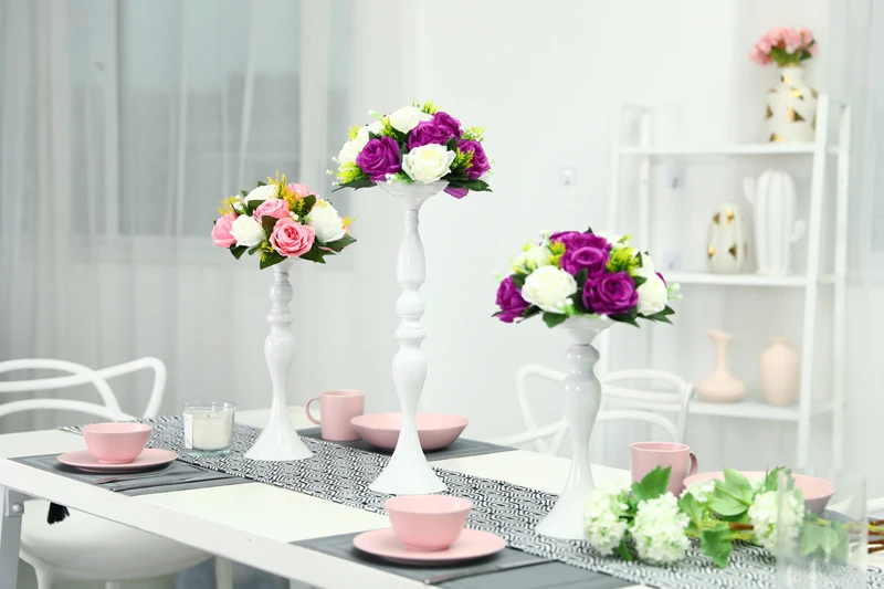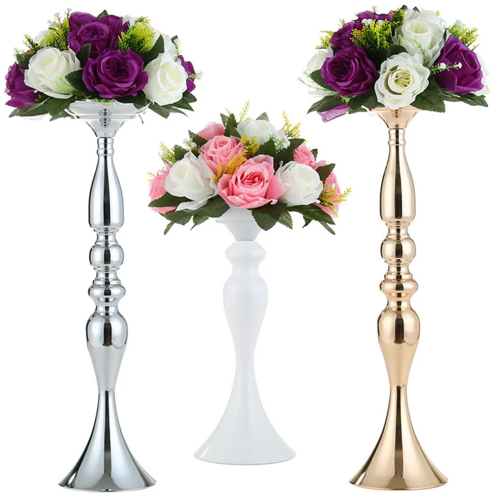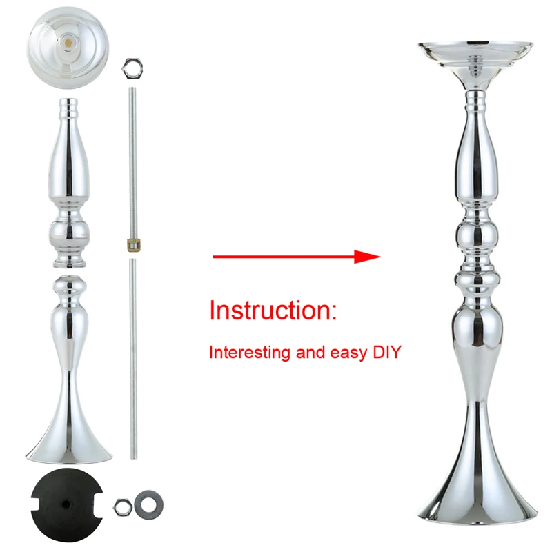 Описание продукта: 1. Материалы: металл 2. Цвет: Золотой/Серебряный/белый 3. Размеры: Большой: 50 см/20 дюймов Средняя: 32 см/15,2'' Маленький: 32 см/13 дюймов Посылка включает в себя: 2 шт. металлический держатель для свечи (без цветка или свечи) Примечание: 1. Ручное измерение, может иметь погрешность с фактическим размером. 2. Светильник и дисплей могут привести к цветовым ошибкам, пожалуйста, обратитесь к фактическому продукту.