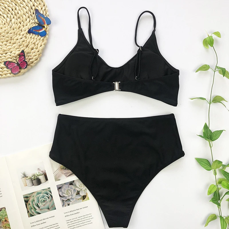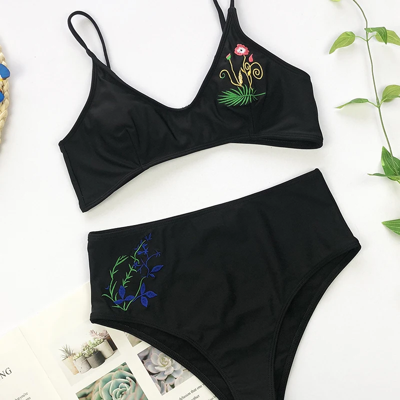 Женский купальник с высокой талией, черный купальник с пуш-апом, пляжная одежда с цветочным принтом, 2020