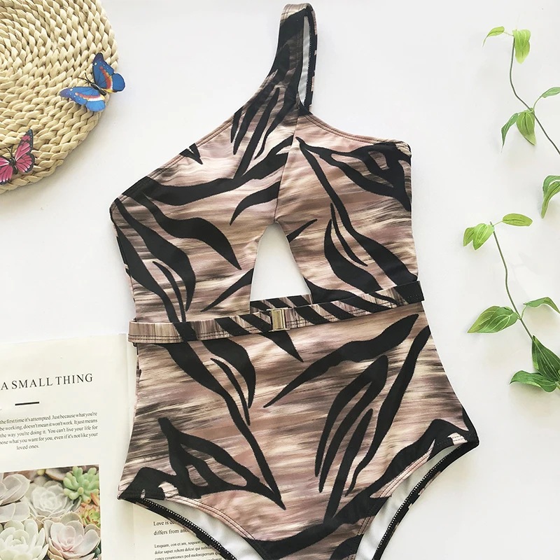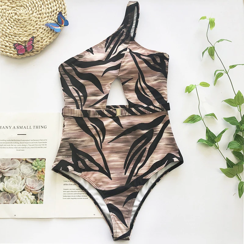 Женский купальник на одно плечо с высокой талией, купальный костюм для женщин, купальный костюм цвета хаки в стиле ретро, купальный костюм из 1 предмета