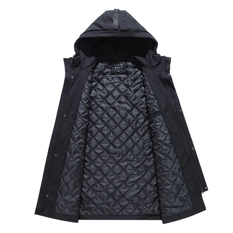 2021 Мужское Пальто Весна Черная Куртка Осень Хлопок Стеганое Пальто Полиэстер Мужская Парка Мода Куртка Демисезонная Мужская Длинные Куртки Молния Пальто С Капюшоном Плюс Размер 4XL-10XL
