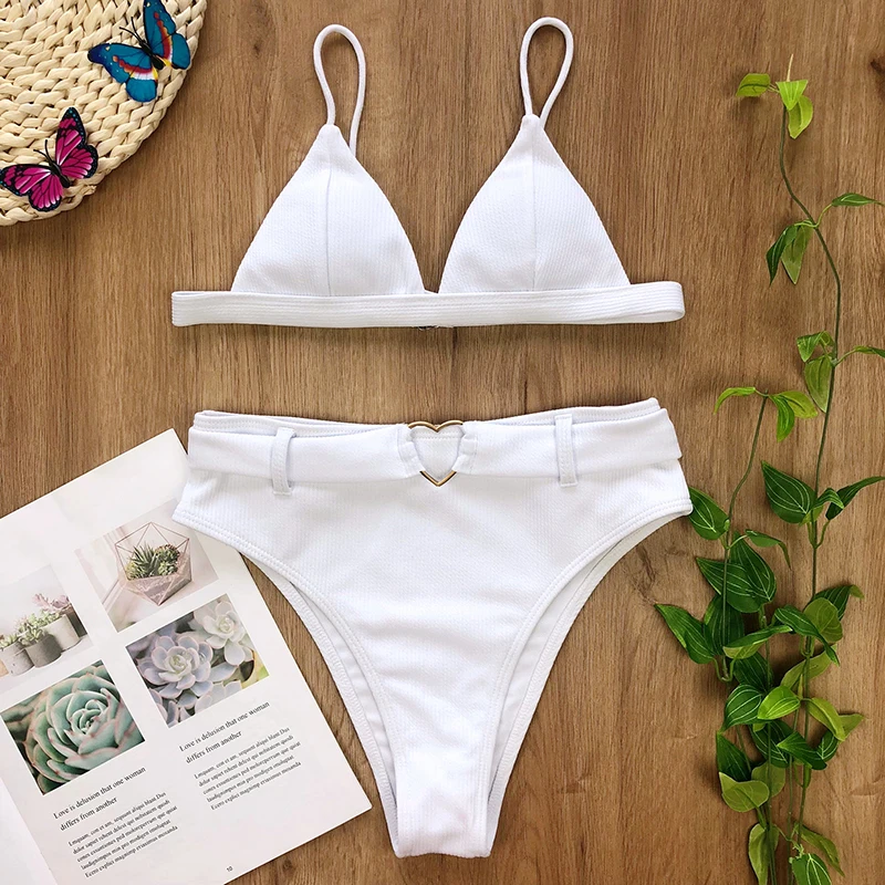 Женский бикини, спортивный купальник, купальник с высокой талией, бикини, однотонный купальный костюм для женщин, купальные костюмы, 2020, новый комплект бикини для женщин