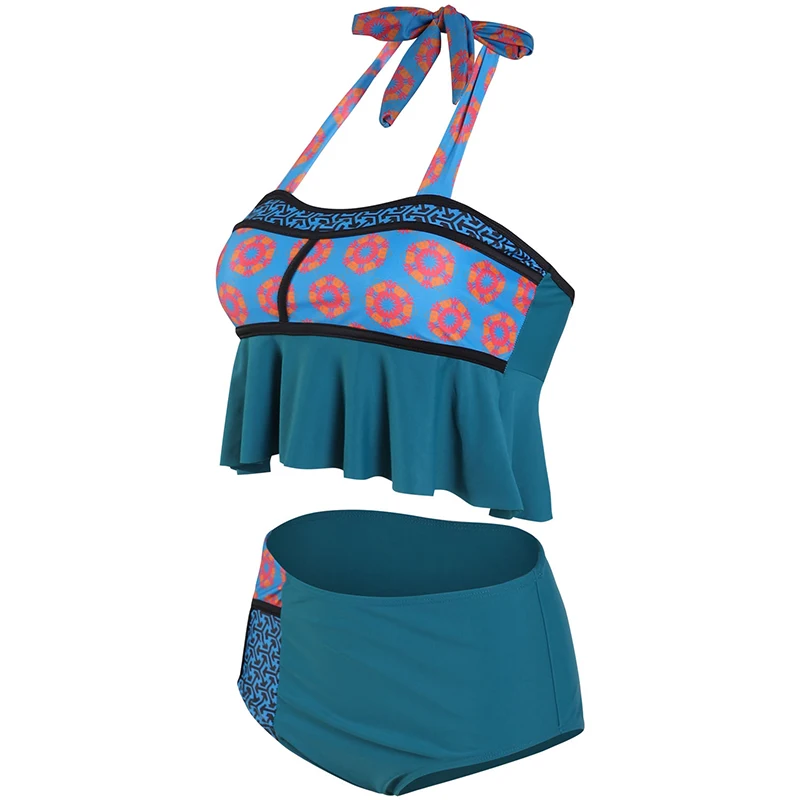 Зеленый купальный костюм с рюшами ретро купальник женский купальник с высокой талией купальный костюм для женщин s купальный костюм пуш-ап с принтом 2020