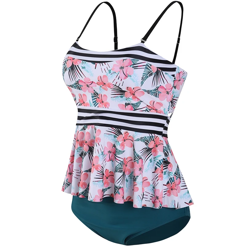 Цветочный купальный костюм, Раздельный купальник, два предмета, консервативные спортивные купальники, ремни, купальник с цветочным рисунком, 2020, новая пляжная одежда, купальный костюм