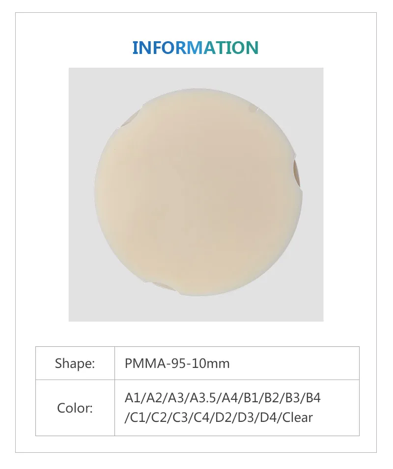 Горячая продажа CAD/CAM блок PMMA пустые стоматологические лабораторные продукты диски PMMA протез композитные материалы блок PMMA s 95*10 мм