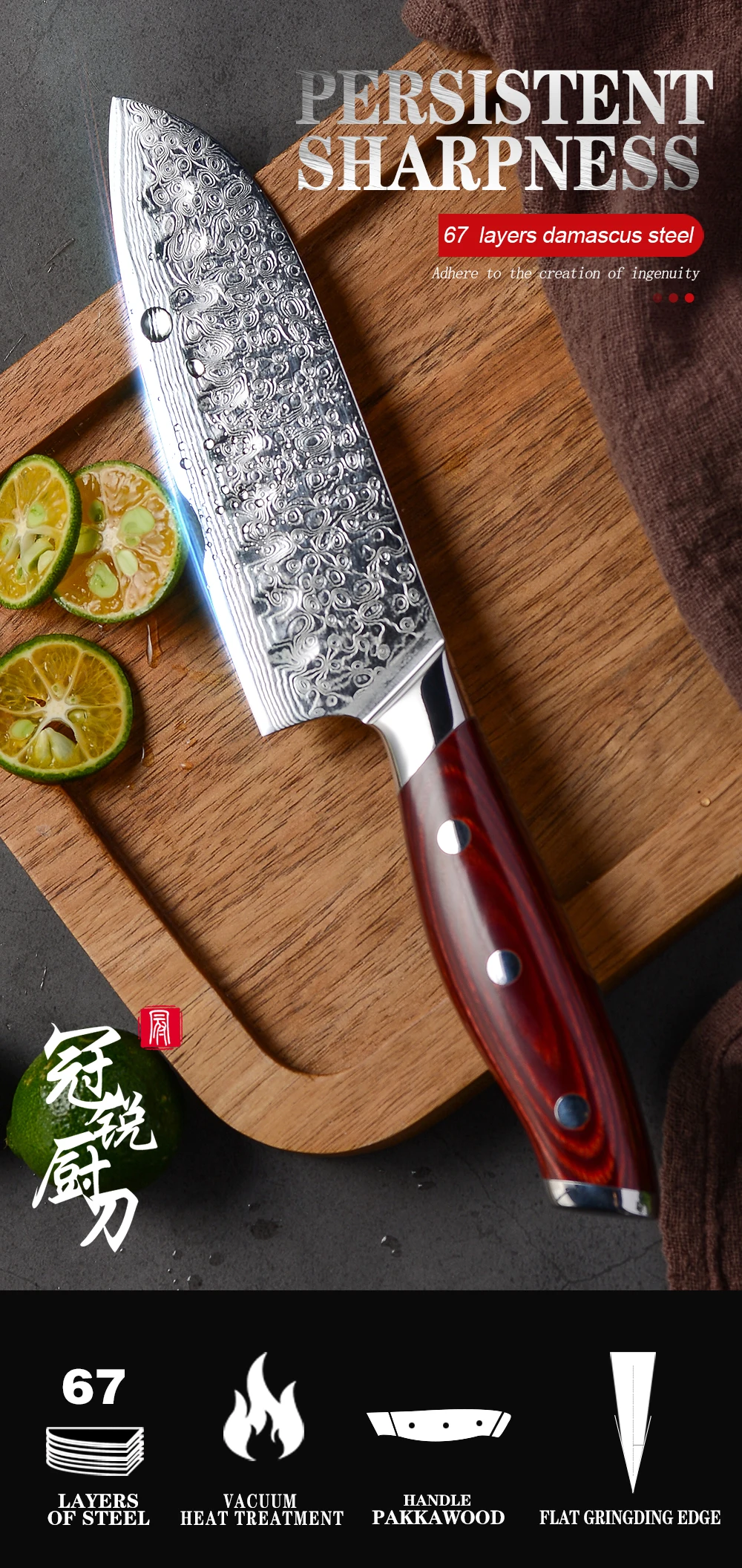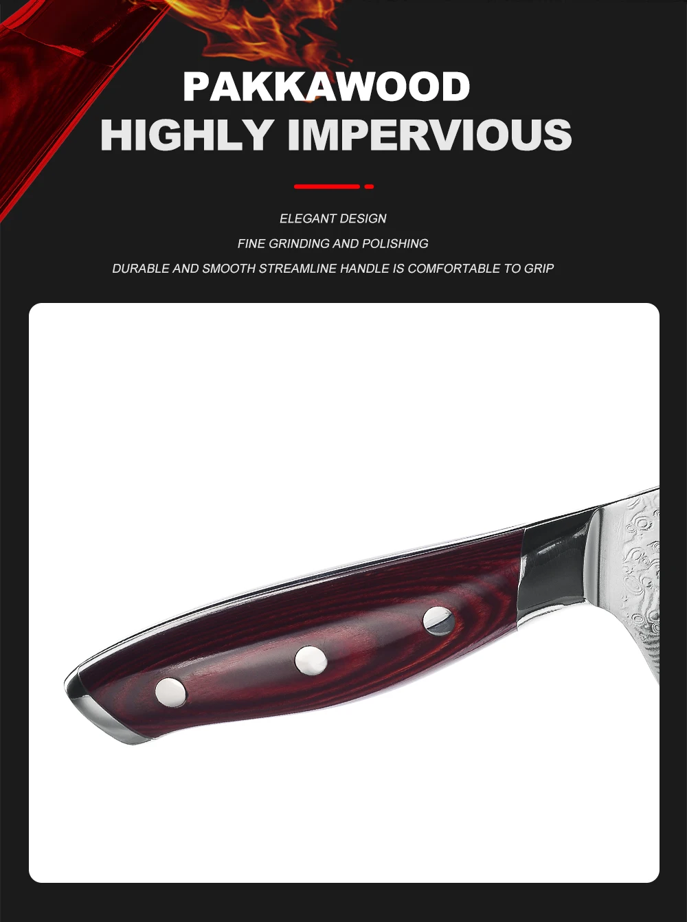 Изготовлен из 67-слой дамасской Сталь импортируется из Японии. VG-10 стальной режущий сердечник;