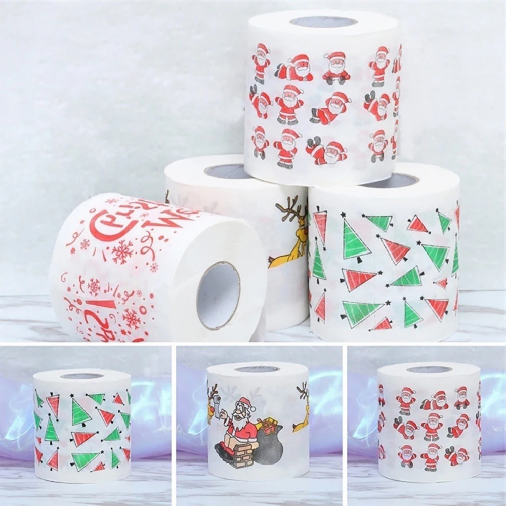 Рождественская туалетная бумага с принтом, Новогодние товары для дома, Рождественская рулонная бумага для дома, ванной, гостиной, рулон ткани, Рождественский Декор