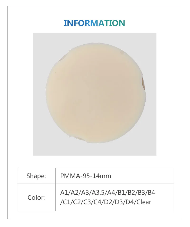 95*14 мм CAD/CAM блок PMMA пустые стоматологические лабораторные продукты диски PMMA диск для фрезерования открытая система временные коронки мосты