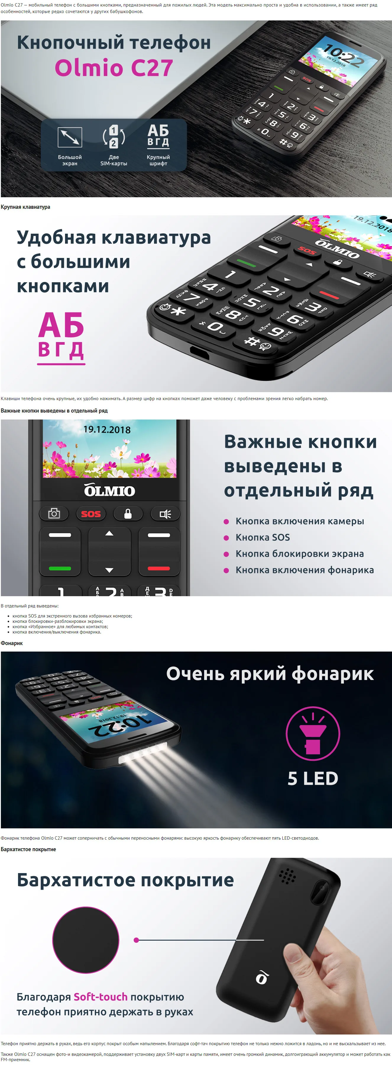 Мобильный телефон с большими кнопками Olmio C27 039013.