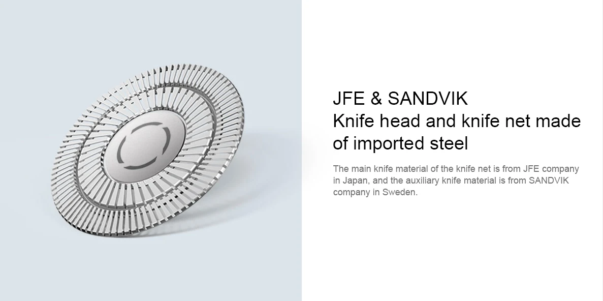 Борода сгибается и растет в разных направлениях, а сама сеть ножей имеет определенную толщину, которая легко оставляет щетину. С двухслойным лезвием, вспомогательный нож приподнимает бороду сначала, а затем главный нож быстро отрезает бороду, чтобы бриться более чисто и тщательно.