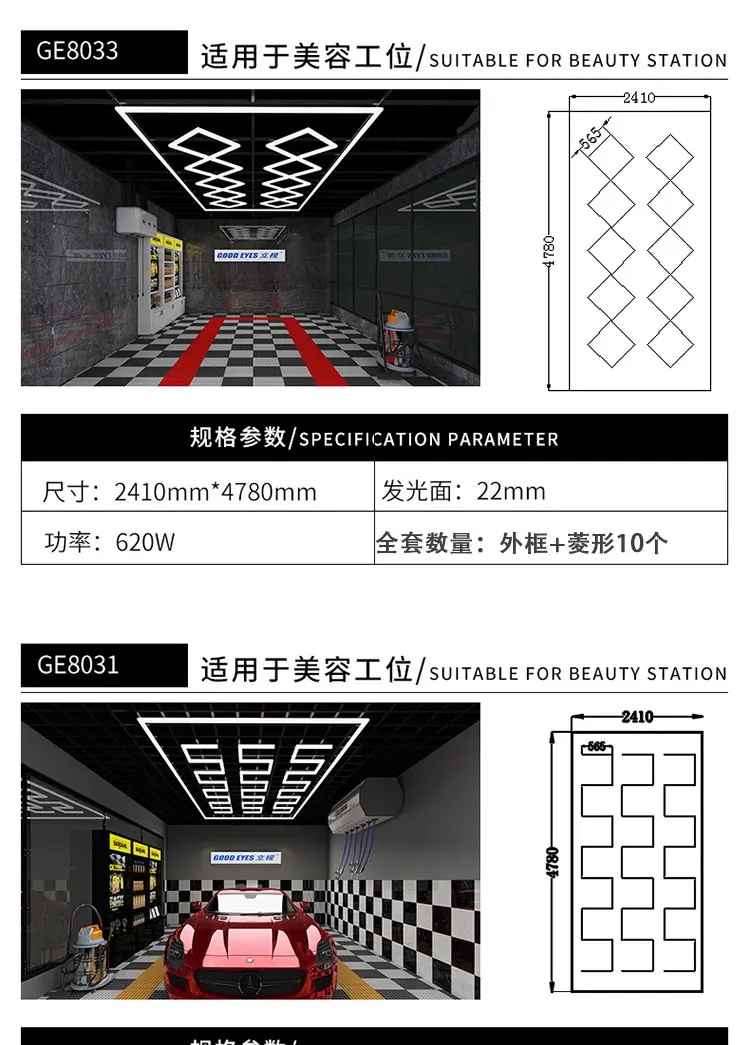 Двухэтажный алюминий, лучше для рассеивания тепла светодиодного света, и цвет отделки легко сочетается с различными украшениями мастерской салона автомойки.