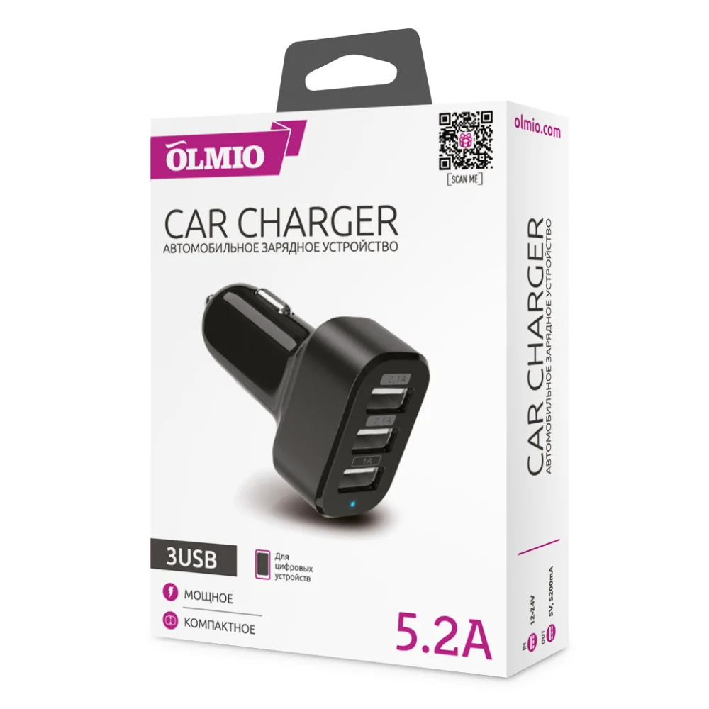 Автомобильное зарядное устройство Olmio 3USB ПР038714 5.2 A.