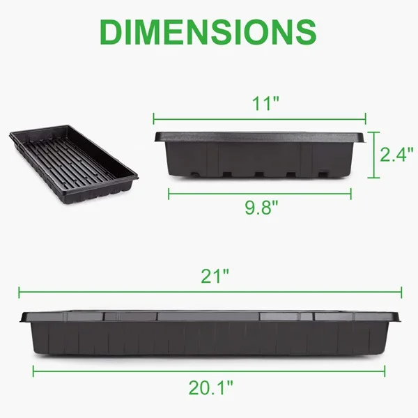 Размер: 21 дюйм x 11 дюймов (измерений), высота 2,4 дюймов, 20,1 дюймов x 9,8 дюймов (нижняя измерения). Идеальный размер идеально подходит для семян, овощей, пшеничной травы или других саженцев растений.