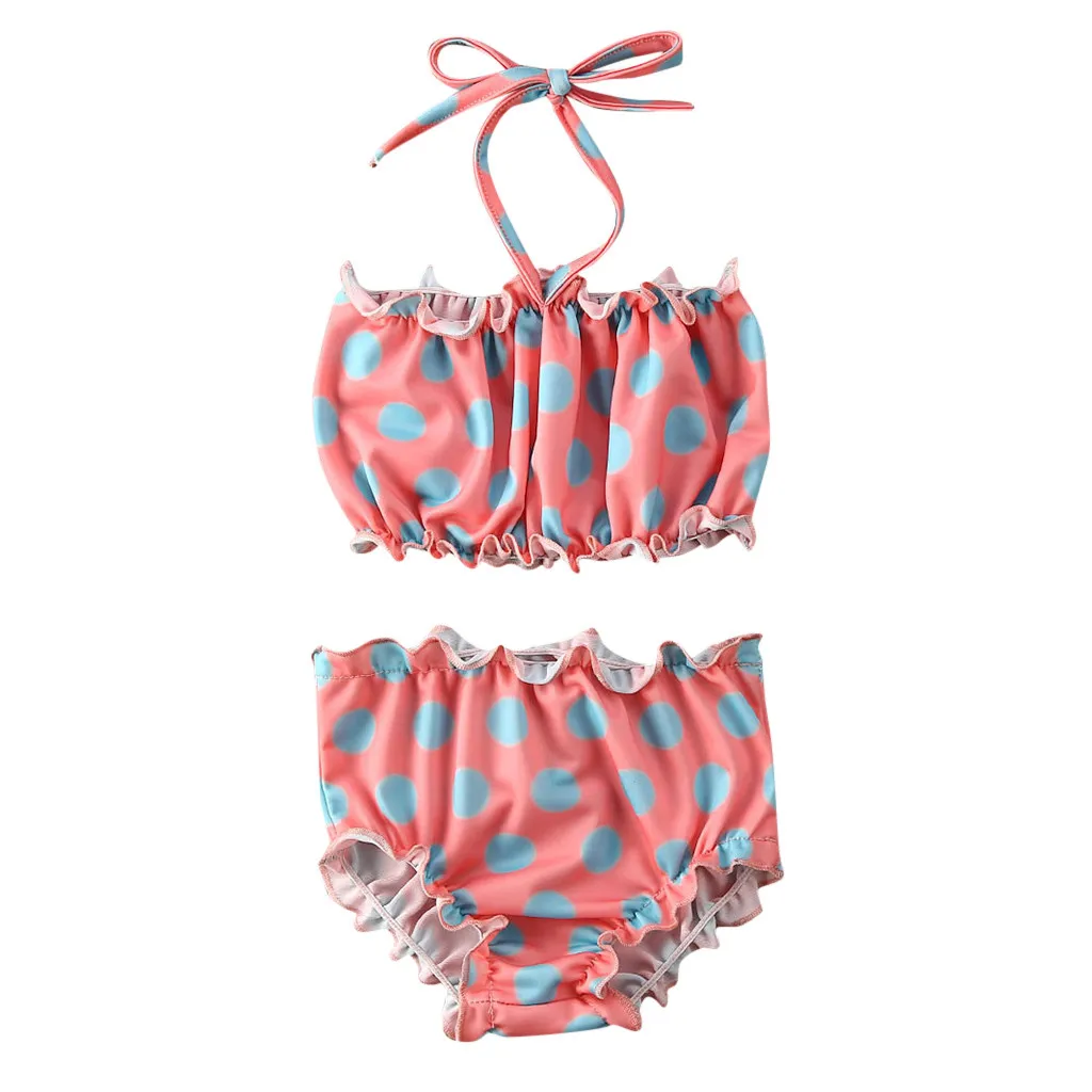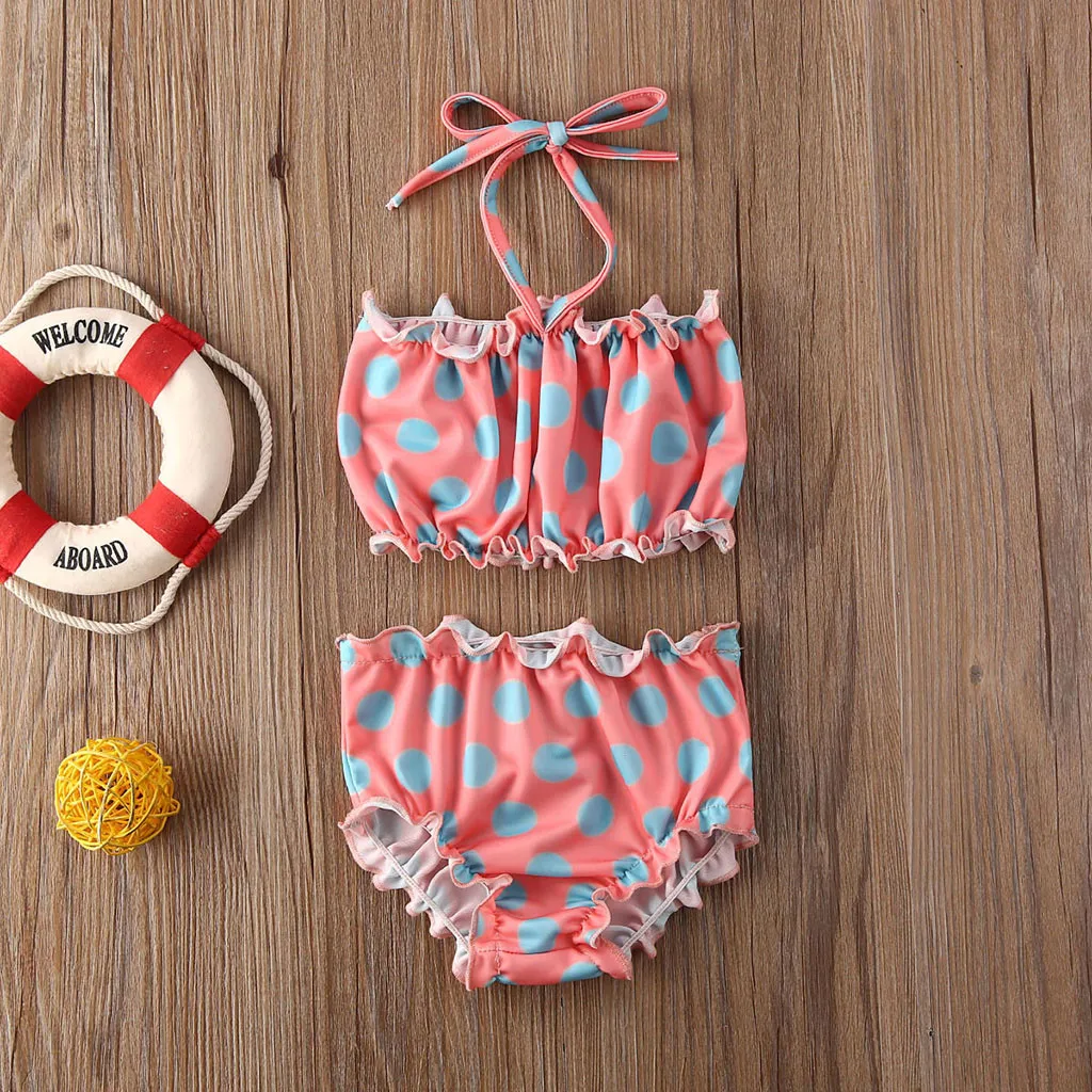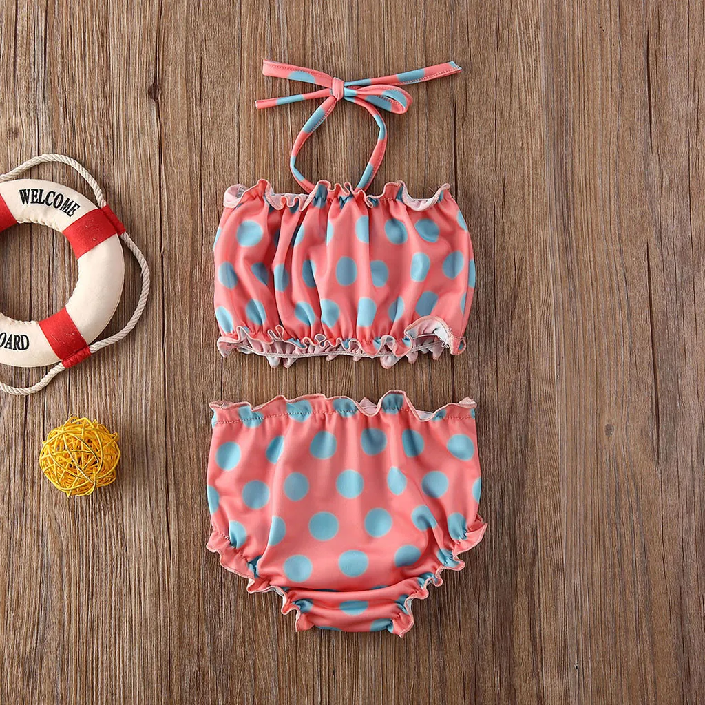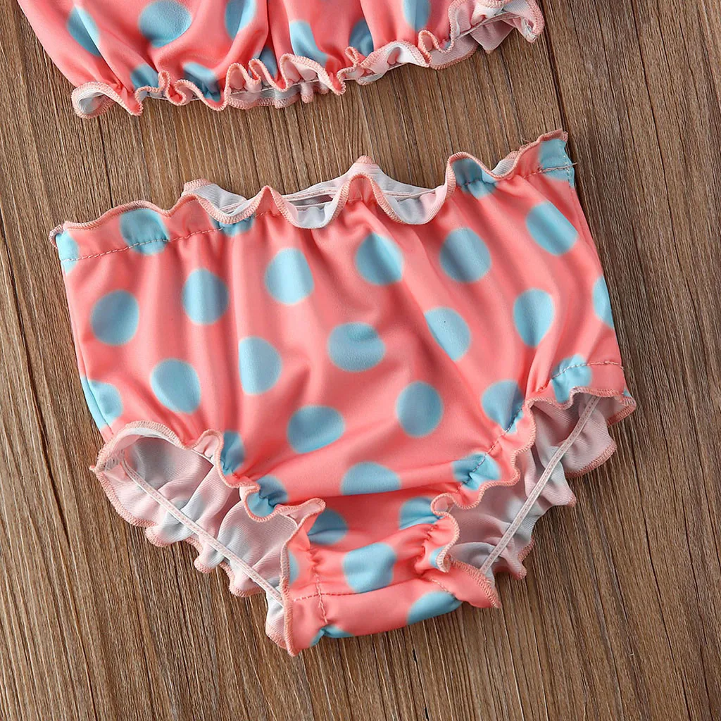 Купальный костюм в горошек с рюшами для маленьких девочек; купальный костюм; Комплект для купания