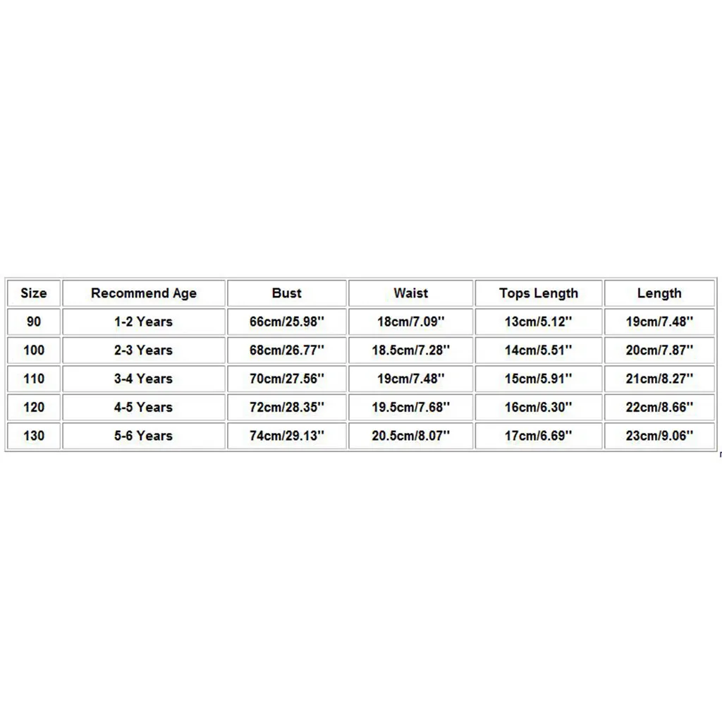 Размер Рекомендуемый возраст Бюст Талия Длина топа Длина 90 От 1 до 2 лет 66 см/25,98'' 18 см/7,09'' 13 см/5,12 дюйма 19 см/7,48'' 100 От 2 до 3 лет 68 см/26,77'' 18,5 см/7,28'' 14 см/5,51'' 20 см/7,87'' 110 От 3 до 4 лет 70 см/27,56'' 19 см/7,48'' 15 см/5,91 дюйма 21 см/8,27'' 120 От 4 до 5 лет 72 см/28,35'' 19,5 см/7,68'' 16 см/6,30'' 22 см/8,66'' 130 От 5 до 6 лет 74 см/29,13'' 20,5 см/8,07'' 17 см/6,69'' 23 см/9,06''