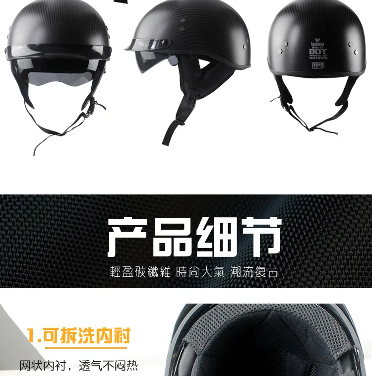 2020 мотоциклетный шлем с открытым лицом мотоциклетный шлем из углеродного волокна Ретро винтажный реактивный шлем Casco Capacete vespa шлем Бренд: Zombies Racing модель: ZR-816 Стиль шлем крейсера Размер: M 57-58 см, L 59-60 см, XL 61-62 см XXL:63-64 см Если ваша голова 55-56 см, выбирайте размер M Цвет: черный, черный, белый, серый Вес: всего 800 г Homologation DOT утвержден Съемная и моющаяся подкладка со съемным козырьком и крышкой для шеи Цвет шлема: 2 цвета в наличии, 4 размера в наличии: