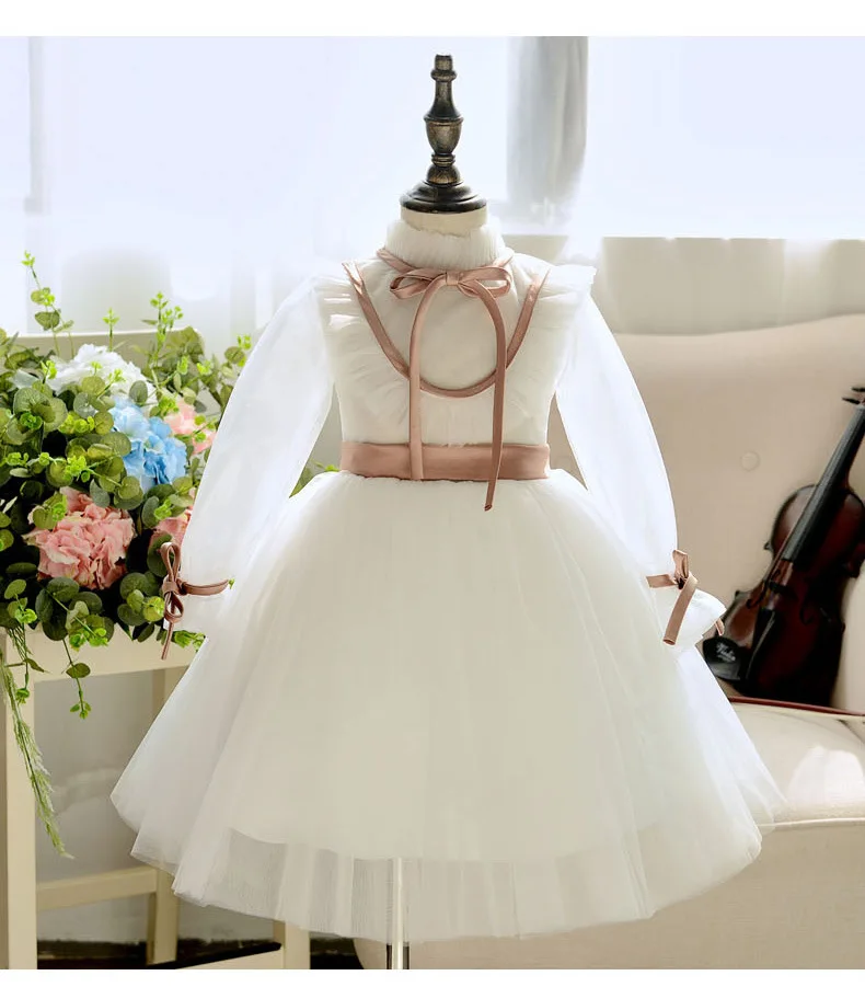 2020 летние детские белые платья принцессы с длинными рукавами и фатиновой юбкой для девочек вечерние бальные платья для маленьких девочек на день рождения