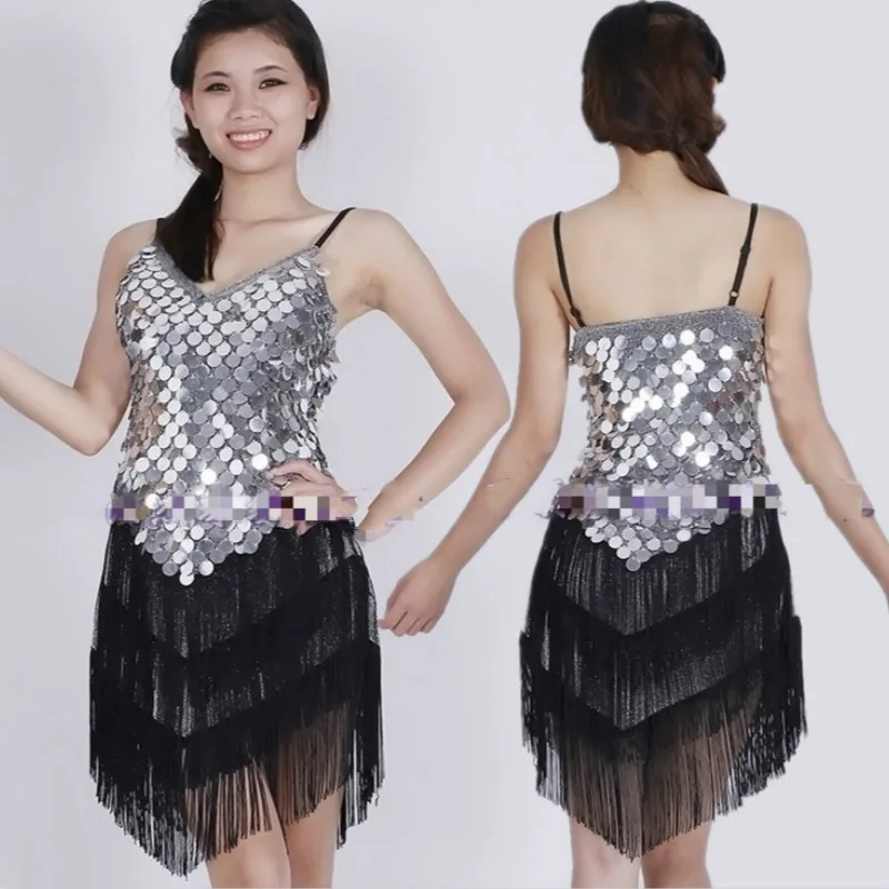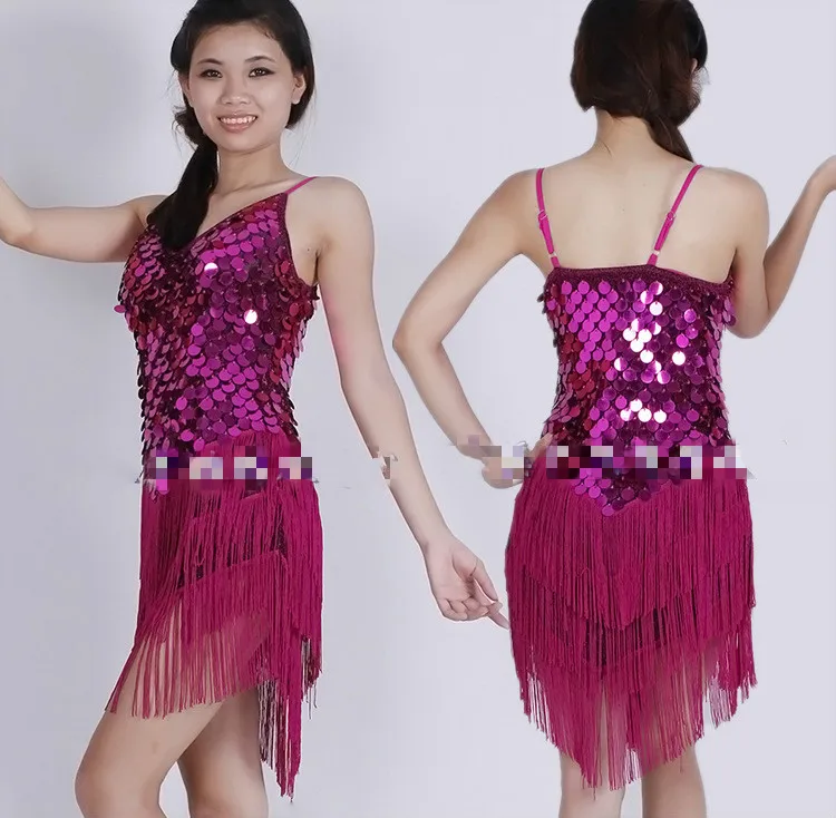 Красные костюмы для латинских танцев для взрослых, женские платья для Бальных соревнований, танцевальная одежда для танго, сальсы, танцевальный костюм, платья с бахромой и золотыми блестками