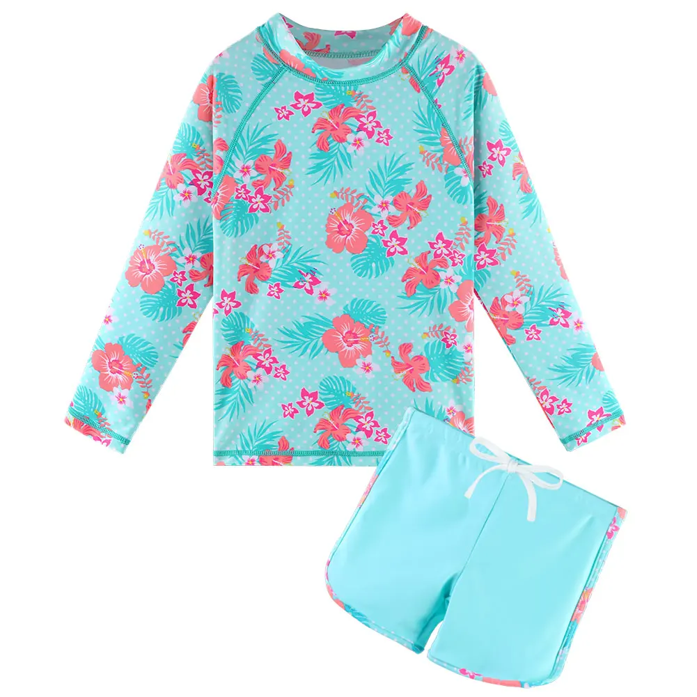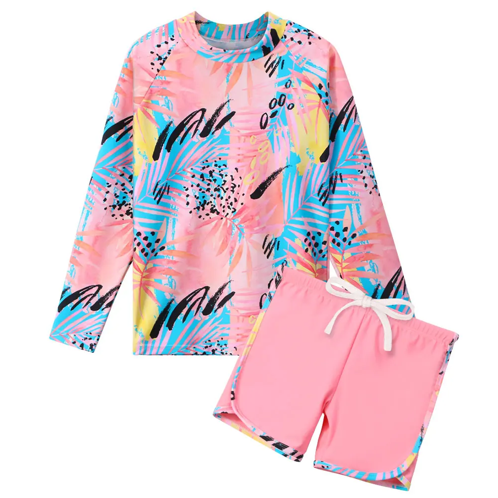 BAOHULU/купальный костюм с длинными рукавами для девочек UPF50 + купальный костюм с принтом для девочек, комплект из 2 предметов, купальный костюм для детей-подростков, пляжный топ + шорты