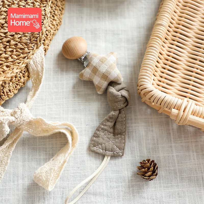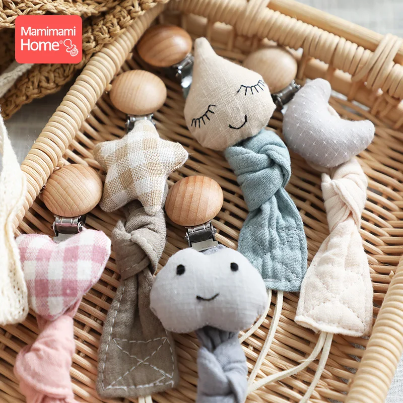 Название продукта: хлопковая цепочка для соски Материал: хлопок + дерево Количество: 1 шт. Использование: детские безопасные аксессуары для соски Советы по очистке: Перед использованием новый товар должен быть очищен теплой водой. И его можно использовать после охлаждения, не подвергать воздействию солнца или кипятка, он должен быть очищен после каждого использования.