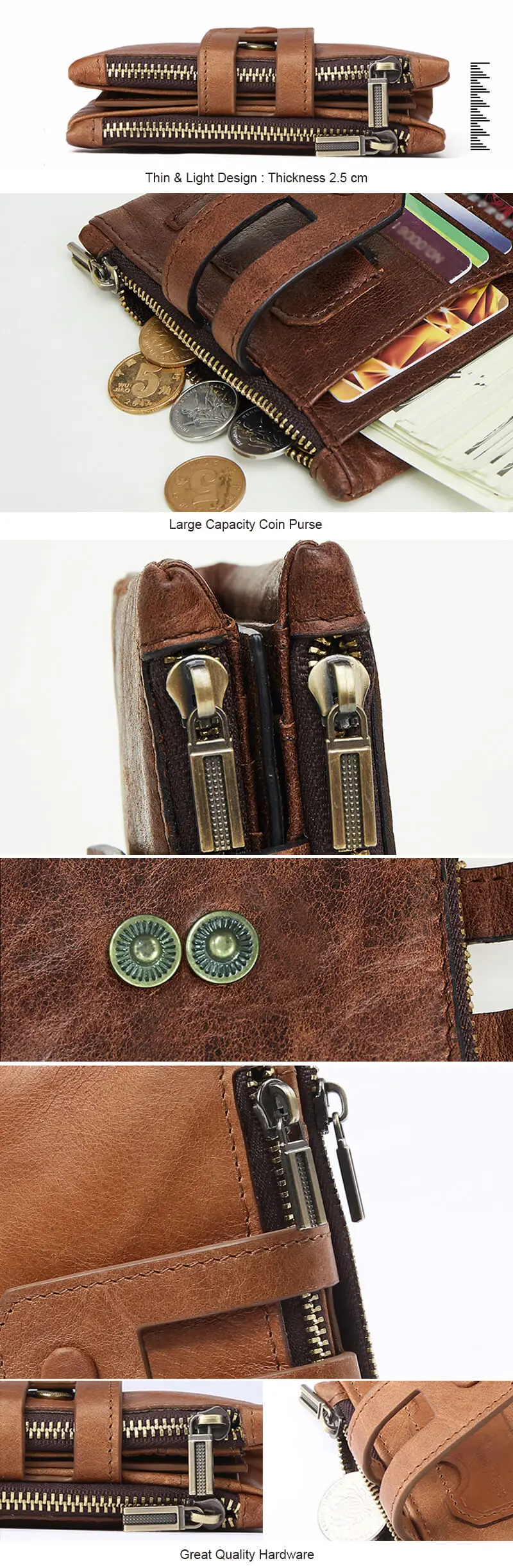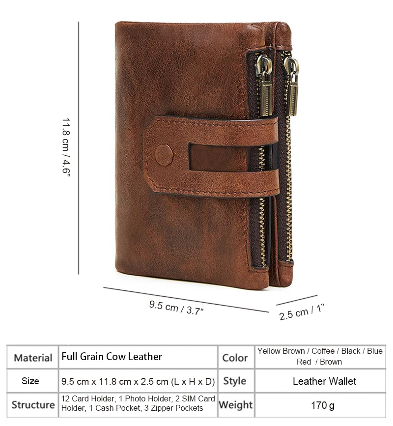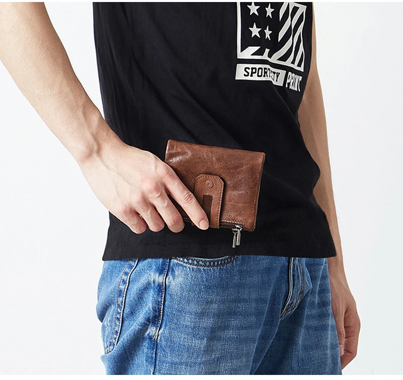 Full Grain Genuine Leather Wallets Mens Cow Leather Coin Purse Wallet Card Holder RFID Leather Wallet