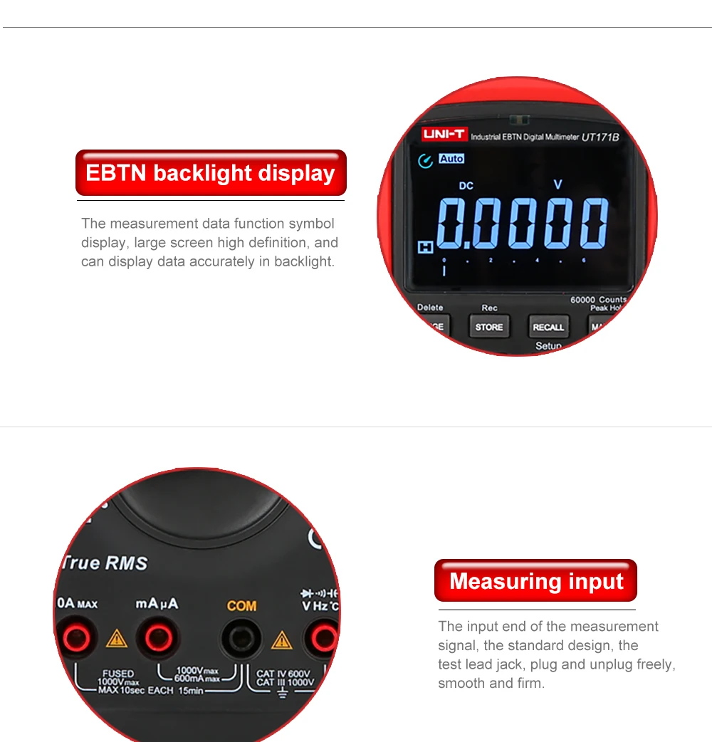Серия UT171-это промышленные мультиметры, используемые профессионалами. Встроенный выход прямоугольной волны полезен для устранения проблем с промышленными контрольными сигналами. Ее функцию LoZ (ACV) можно использовать для определения остаточного (Призрачного) напряжения в больших конденсаторных конденсатах.