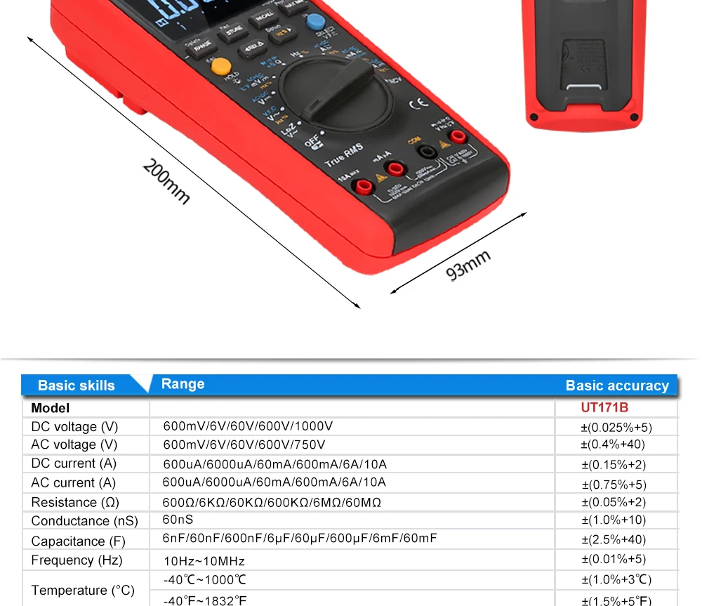 UT171B Промышленный Цифровой мультиметр, измеряющий истинные квадратичные значения