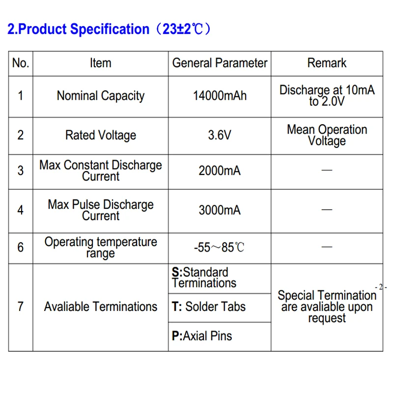 Тип батареи: ER34615 батарея 14000mAh 3,6 V Li-SOCl2 (тип питания) Литиевые батареи Бренд: PKCELL Модель: Аккумулятор ER34615M 3,6 В Li-SOCl2 Номинальная емкость: 14000 мАч Номинальное напряжение: 3,6 В Стандартный ток: 10 мА Максимальный непрерывный ток разряда: 1000 мА Максимальный разрядный импульсный ток: 1500ма Напряжение отключения: 2 в Рабочая температура (°C): от-55 до + 85 градусов Номер модели: ER26500M Размер: 34,2*61,5 мм Вес: 106 г Особенности: 1. Срок годности: 10 лет. 2. Срок хранения: ≥ 10 лет, годовая самоотдача ≤ 1% 3. Одобрено UL & ROSH. Применение: интеллектуальный инструмент и счетчик Память и питание в режиме ожидания, сигнализация и устройства безопасности Автомобильная электроника, сбор электронных пошлин Millitary устройства