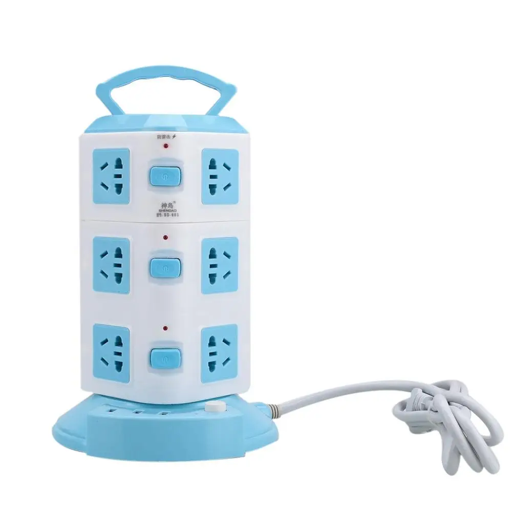 Прочная ручка на верхней части для удобной переноски; Один переключатель на каждом слое помогает сохранить мощность и дает легкий контроль для защиты от перенапряжения полосы питания.