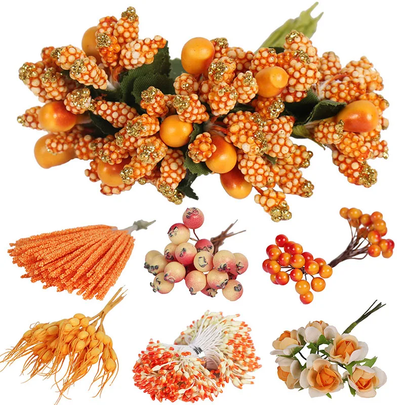 Искусственные цветы в рождественском стиле на свадьбу тычинки декоративный венок ягоды Комплект смешанные DIY вишня оранжевый подарочной коробке 6/10/12/50/70/288 шт