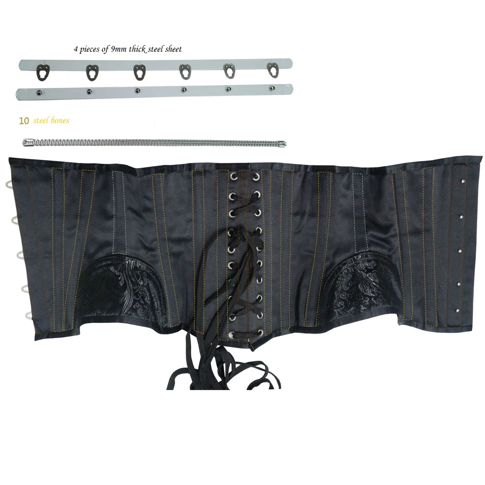 Всего 16 стальных костей-2 прочные стальные косточки (1 дюйм в ширину) спереди, 2 жестких стальных пластины и 12 спиральных/Гибких Стальных костей вокруг корсета