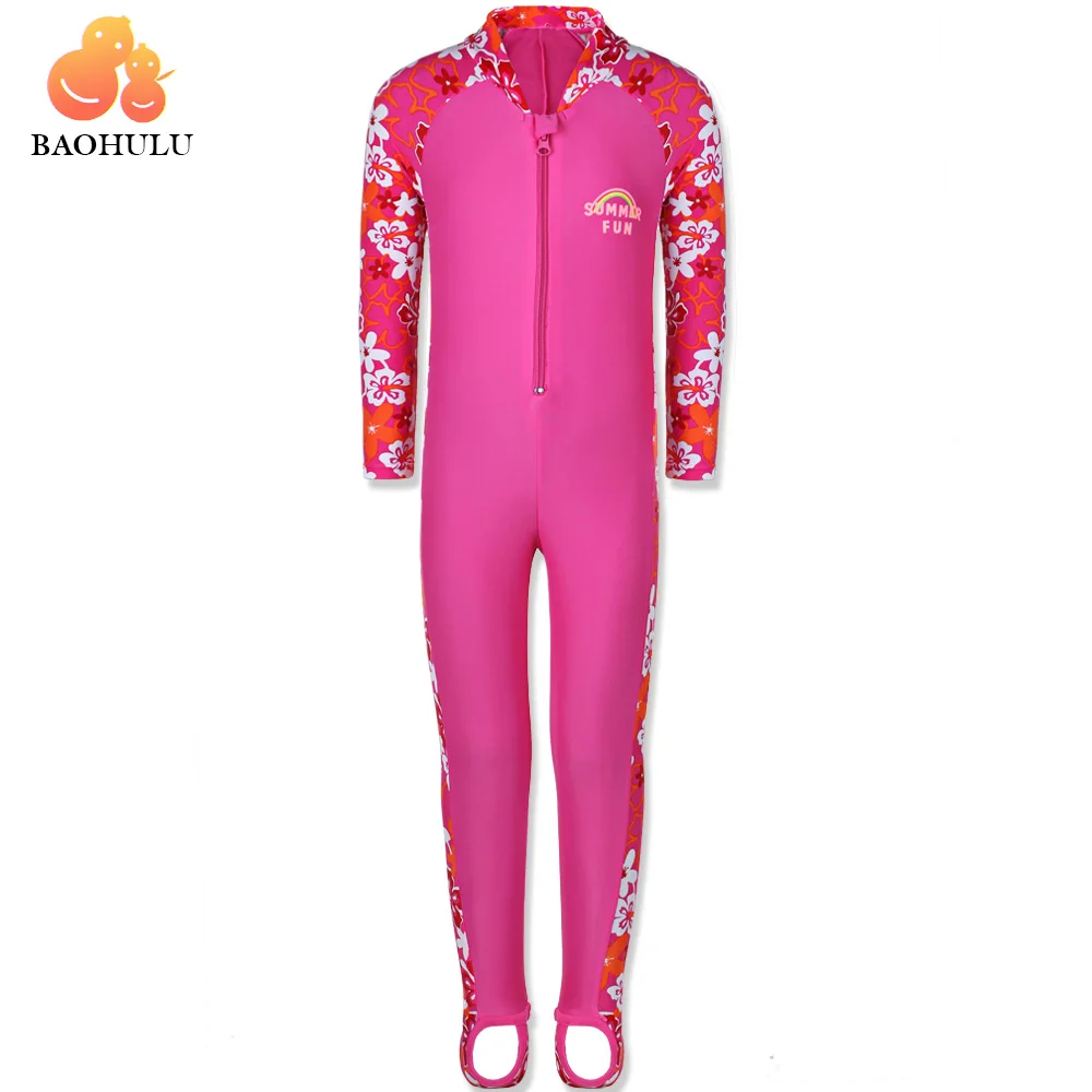 BAOHULU Boys Swimwear Kids One Piece Long Sleeve Shark Print Navy Color Swimsuit O-neck Beach Wear UV 50+ Protective Rash Guards