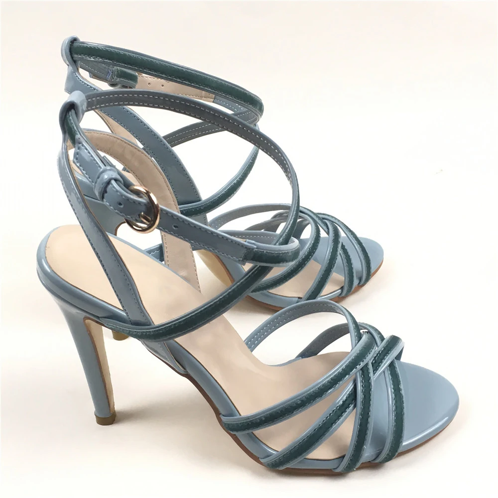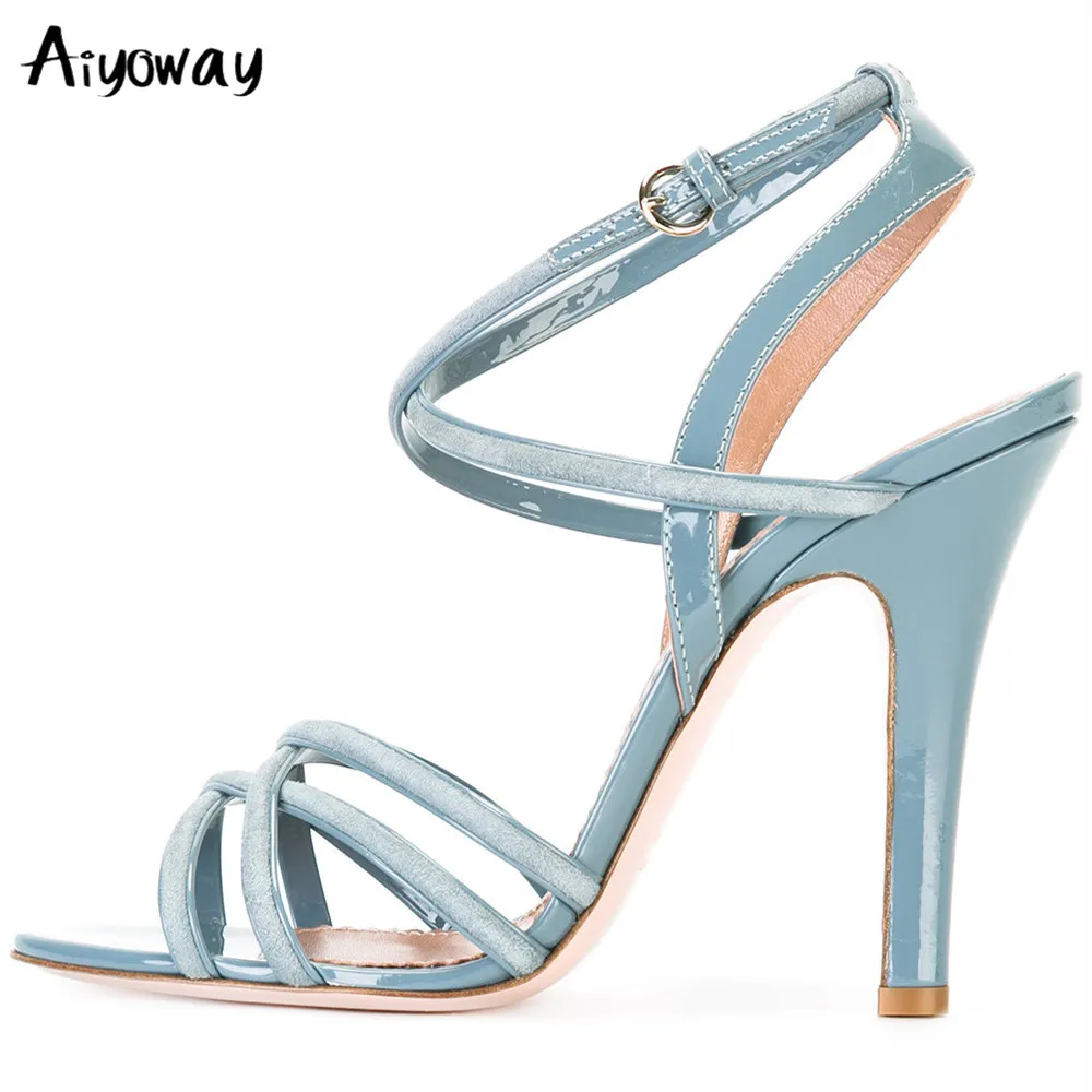 Aiyoway/Модные женские Летние Босоножки с открытым носком на высоком каблуке-шпильке; Светло-Голубые Вечерние модельные туфли с ремешком на щиколотке и пряжкой
