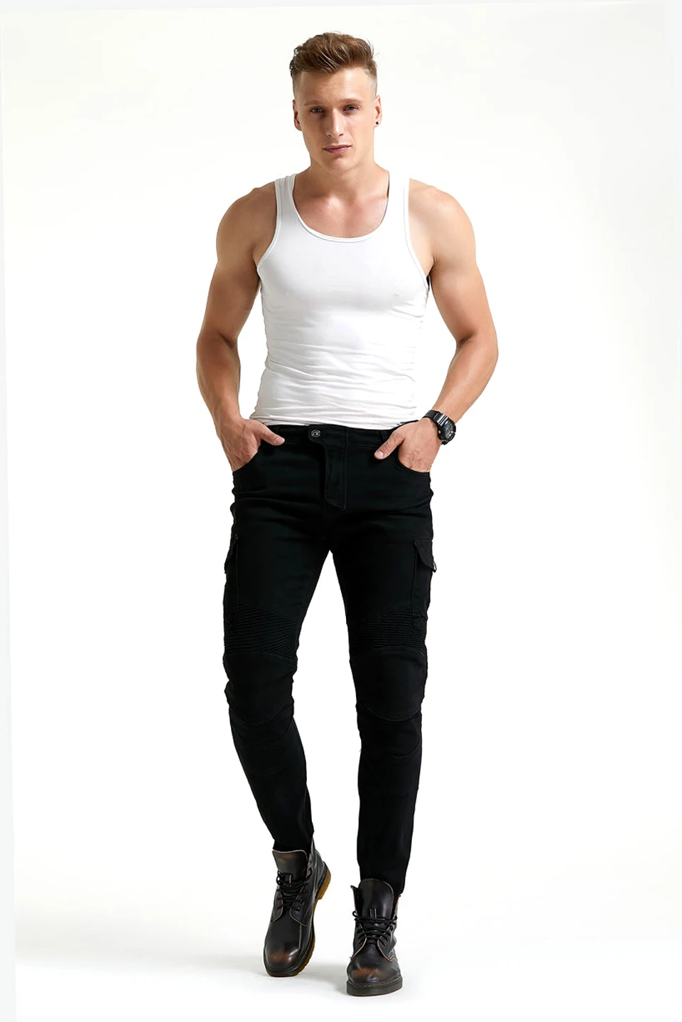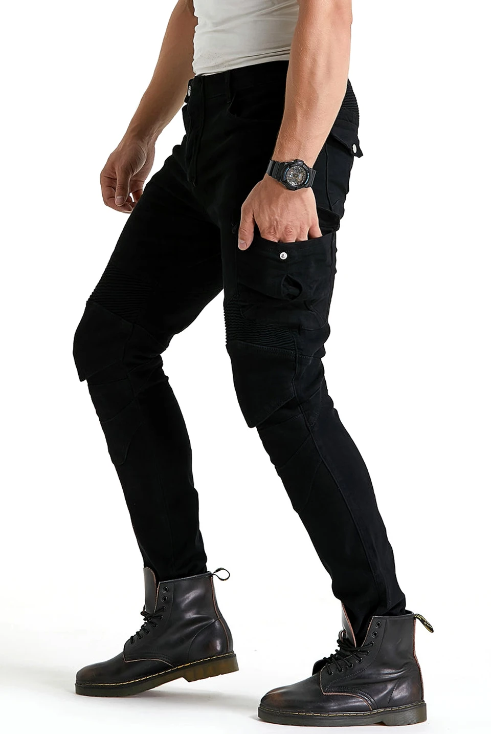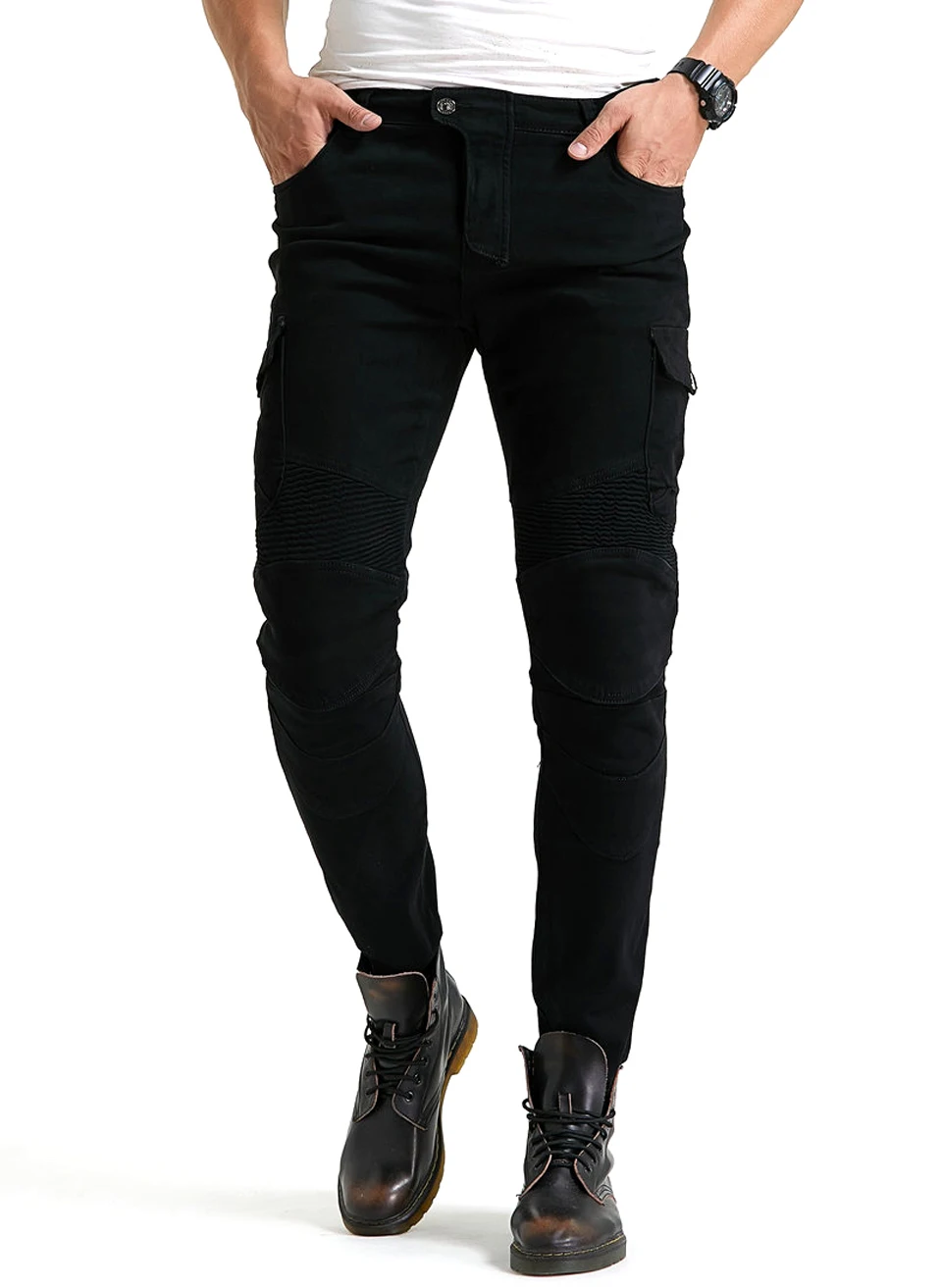 Черные мотоциклетные джинсы WF-06