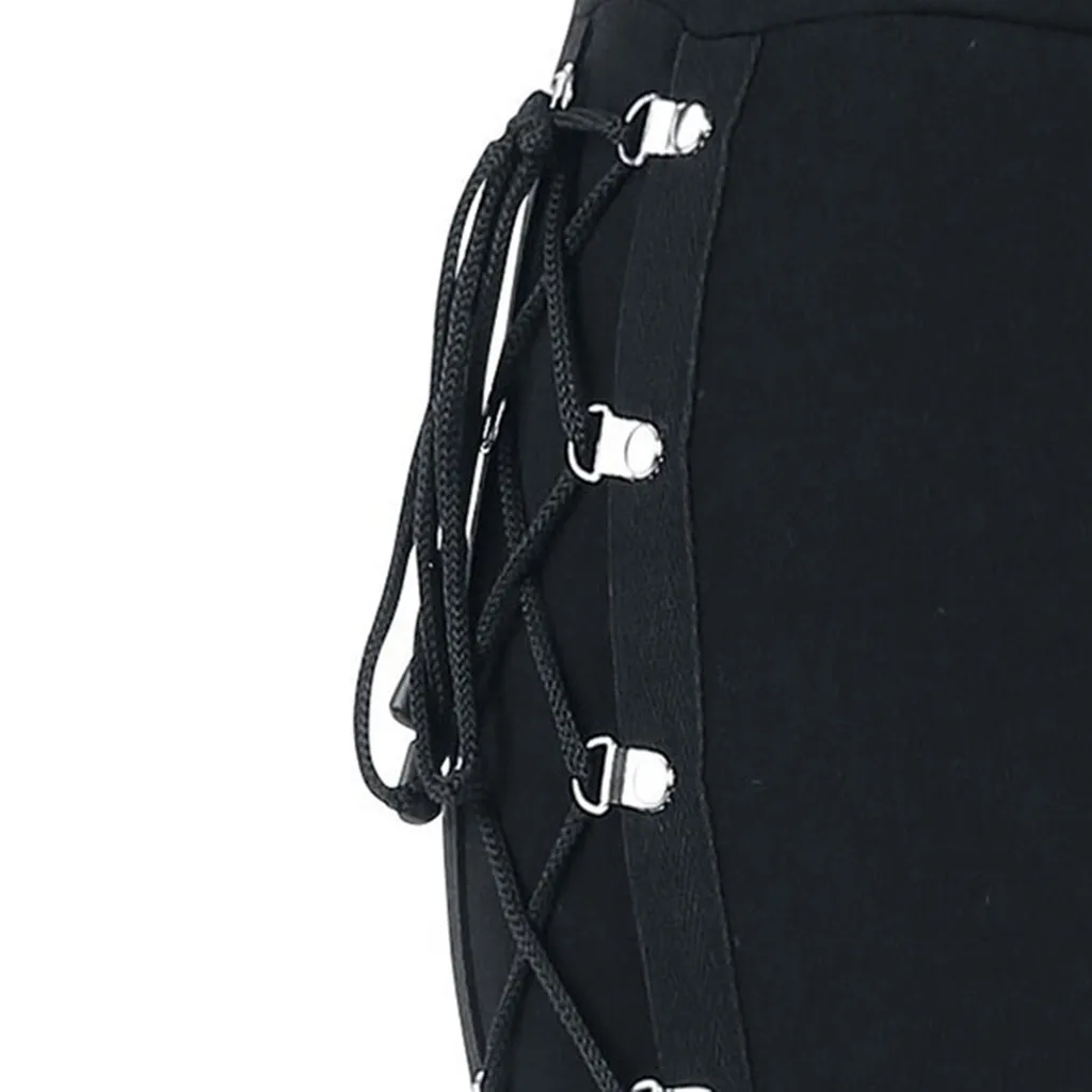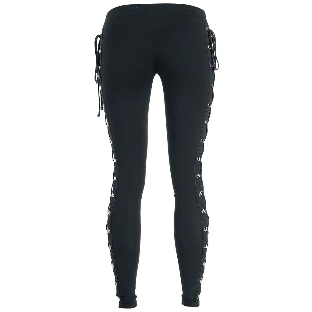 Женские Модные готические леггинсы со шнуровкой сбоку, черные обтягивающие брюки