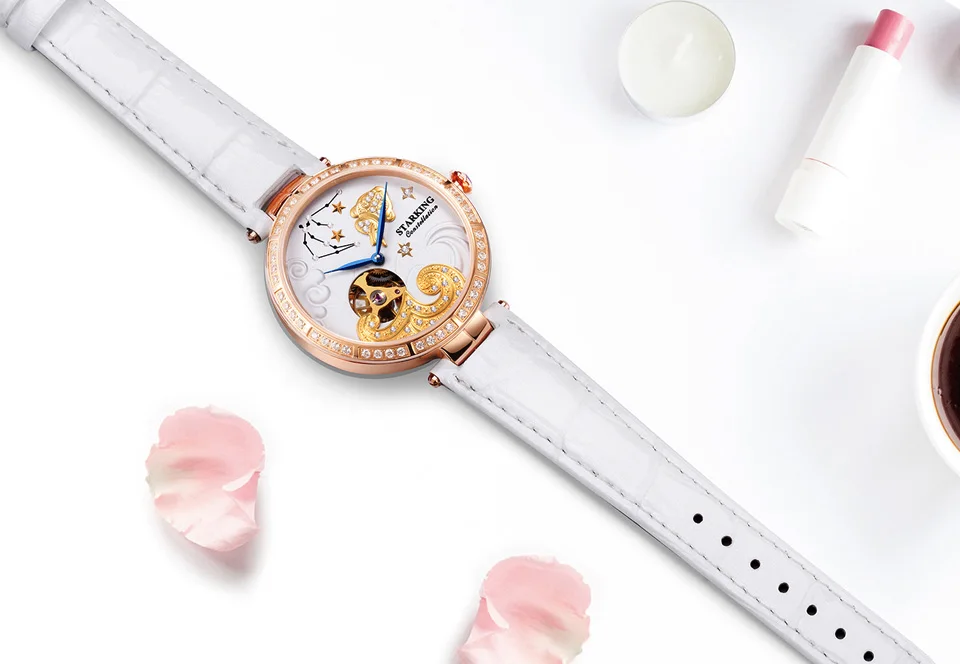 Женские часы STARKING, брендовые роскошные кожаные часы Aquarius Constellation, женские часы с короной, модные повседневные Простые наручные часы для женщин