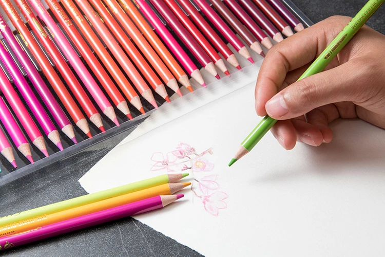 Карандаши разделены на Масляные карандаши и акварельные карандаши «акварельные карандаши», яркие, легко окрашиваются и имеют низкую прозрачность. Так как они растворяются в воде, они могут быть утолщены путем окрашивания водой. Можно достичь акварельного эффекта, не рекомендуется для начинающих
