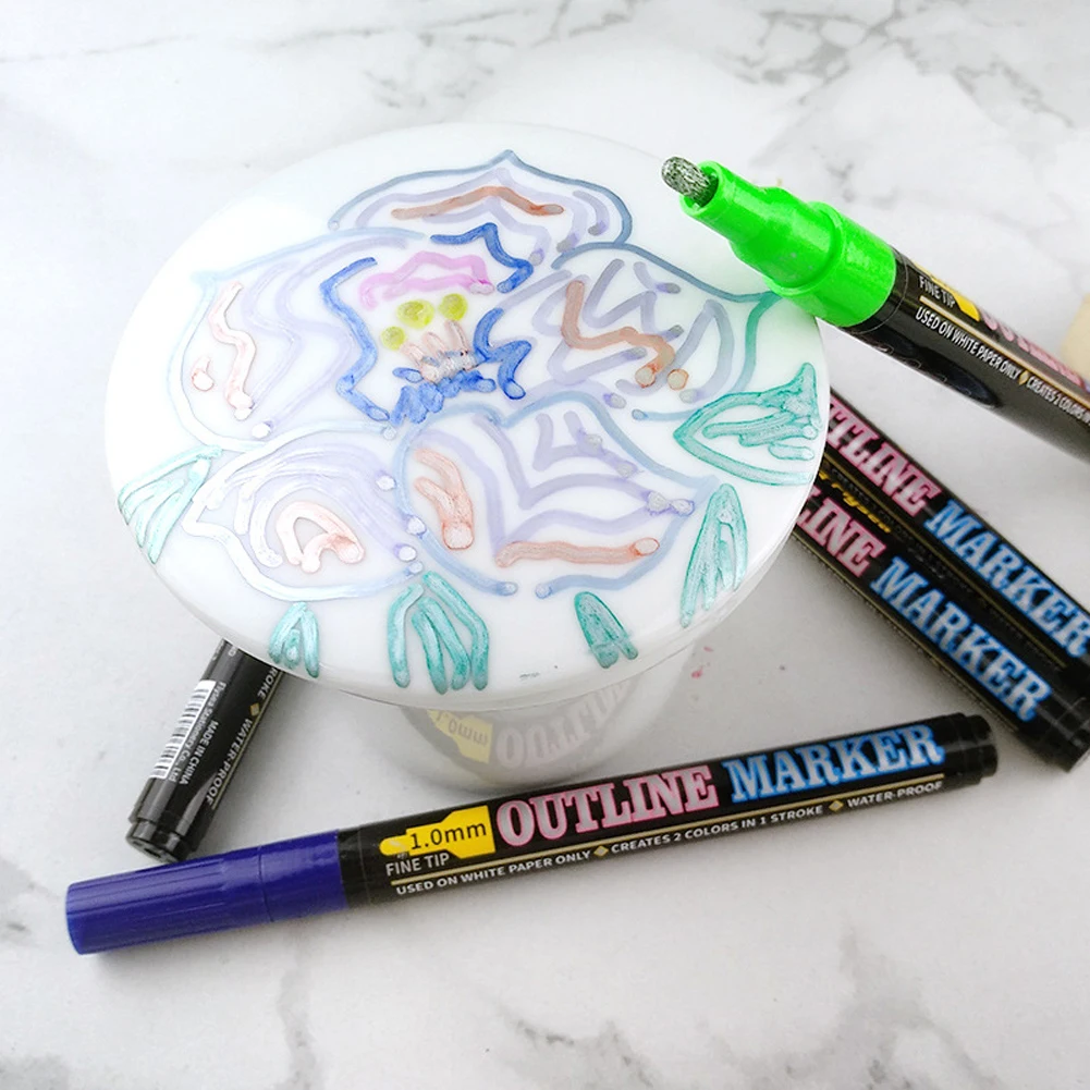 Двусторонние Контурные ручки, 12/18 цветов самостоятельные Контурные Ручки Маркеры цвета "металлик" Блестящие Контурные ручки для письма и рисования яркие ручки для подарочных открыток, поздравлений на день рождения, скрап-букинга, рисования, камня, керамики, стекла, поделки искусство ремесла