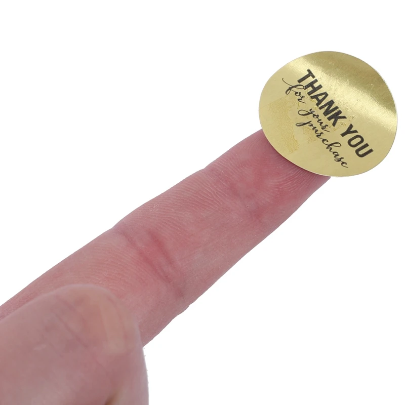 Напечатаны на высококачественной золотой фольге с надписью «спасибо за ваш заказ», напечатанной в легко читаемых черных чернилах.