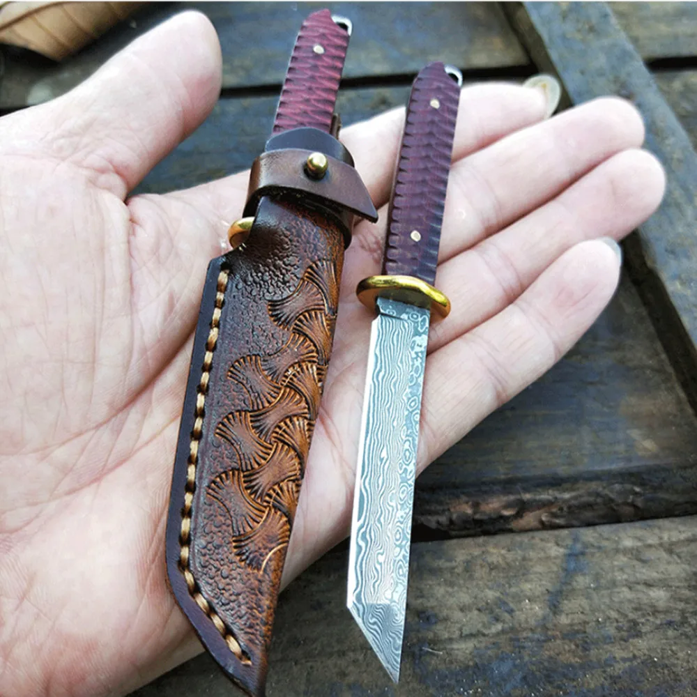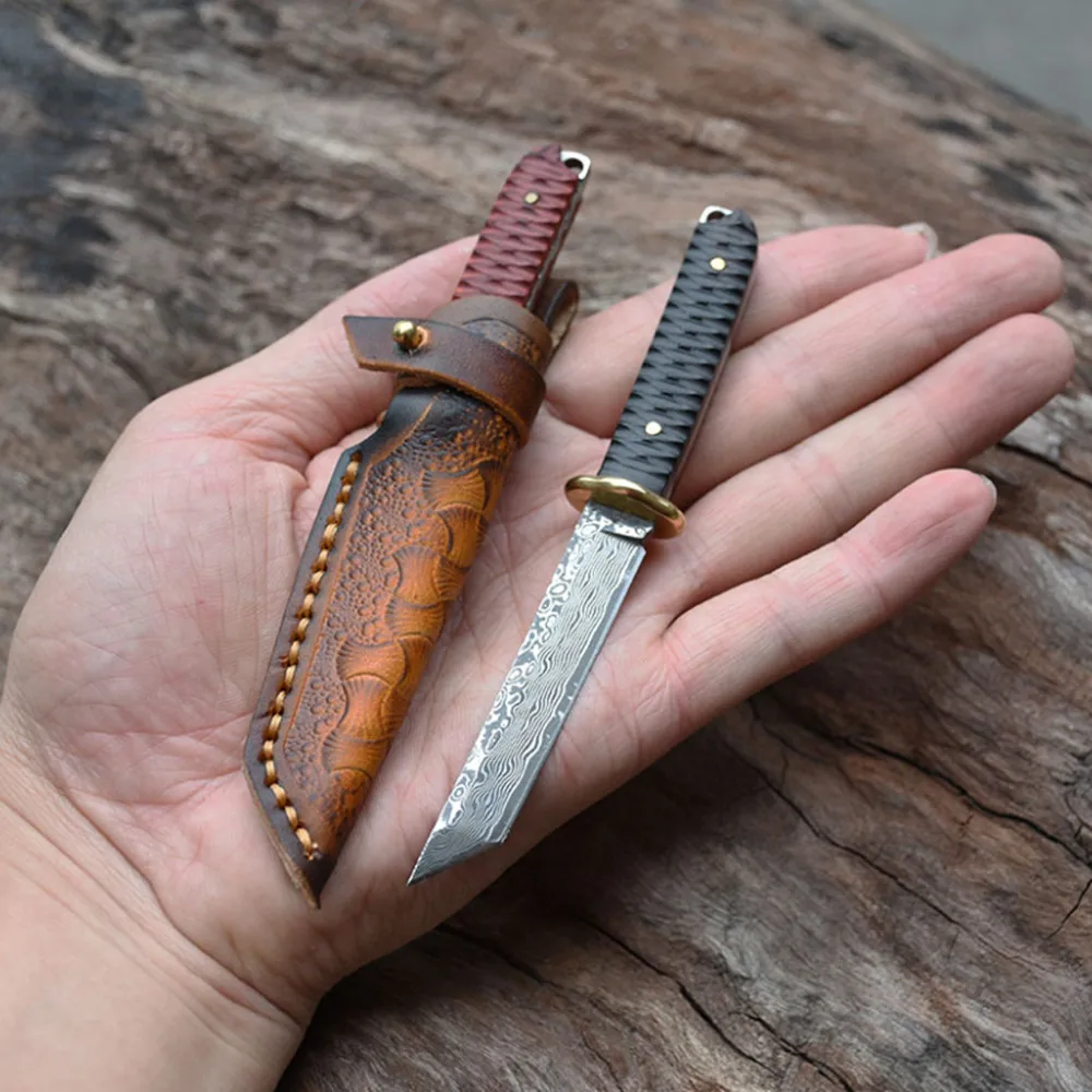 Дамасская сталь лезвие японский нож 60HRC Эбеновое дерево ручка Танто самообороны самурайский прямой нож