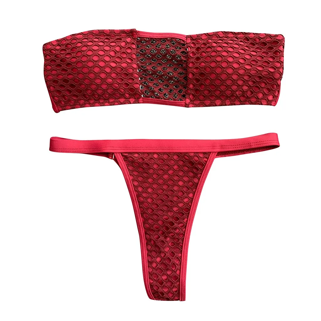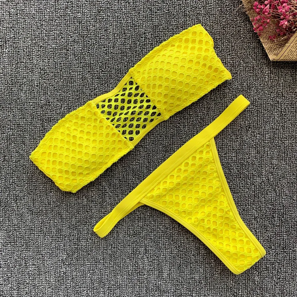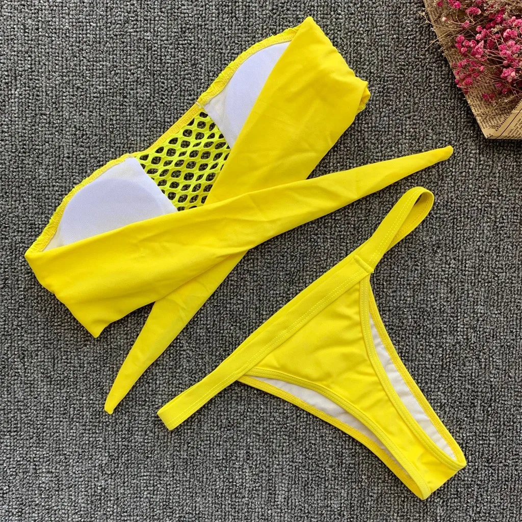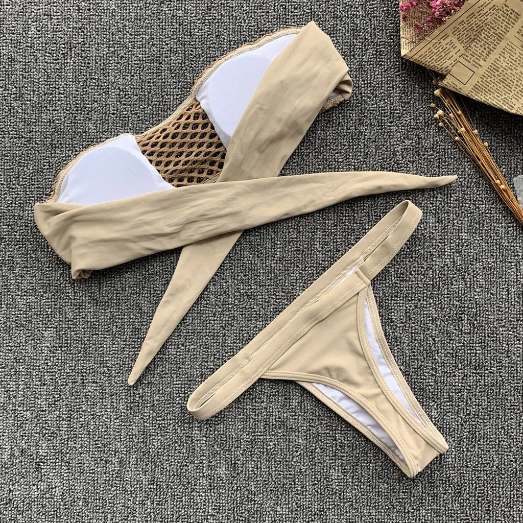 Для женщинСексуальный Одноцветный женский купальник бикини, Раздельный бандаж, сетка для купания, одежда для купания, съемный мягкий бюстгальтер с мягкими чашечками, без косточек, широкая лента на спине, хорошо покрывает ваше тело.