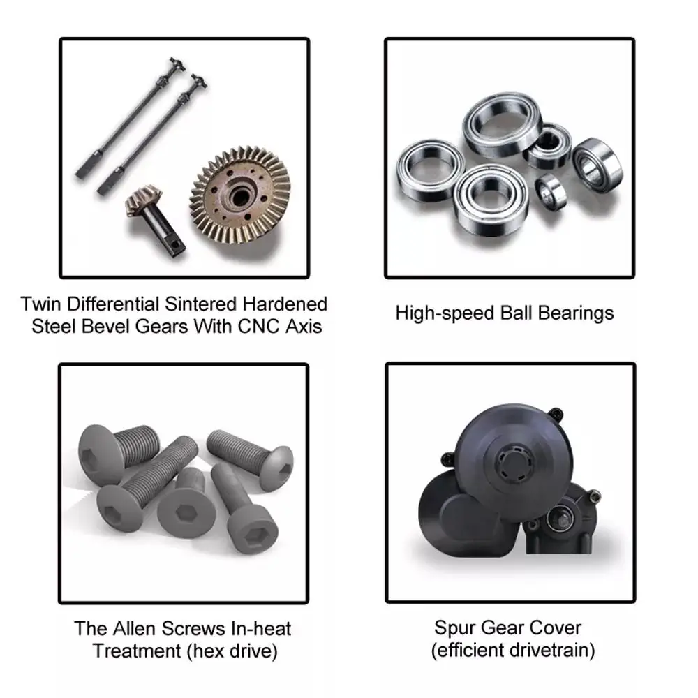 Высокоскоростные шариковые подшипники, высокомощный и высокопроизводительный водонепроницаемый матовый ESC, специальный металлический сервопривод с высоким крутящим моментом 6 кг/см, специальный водонепроницаемый приемник с полностью герметичной крышкой шестерни, чтобы автомобиль мог ездить нормально даже в воде.